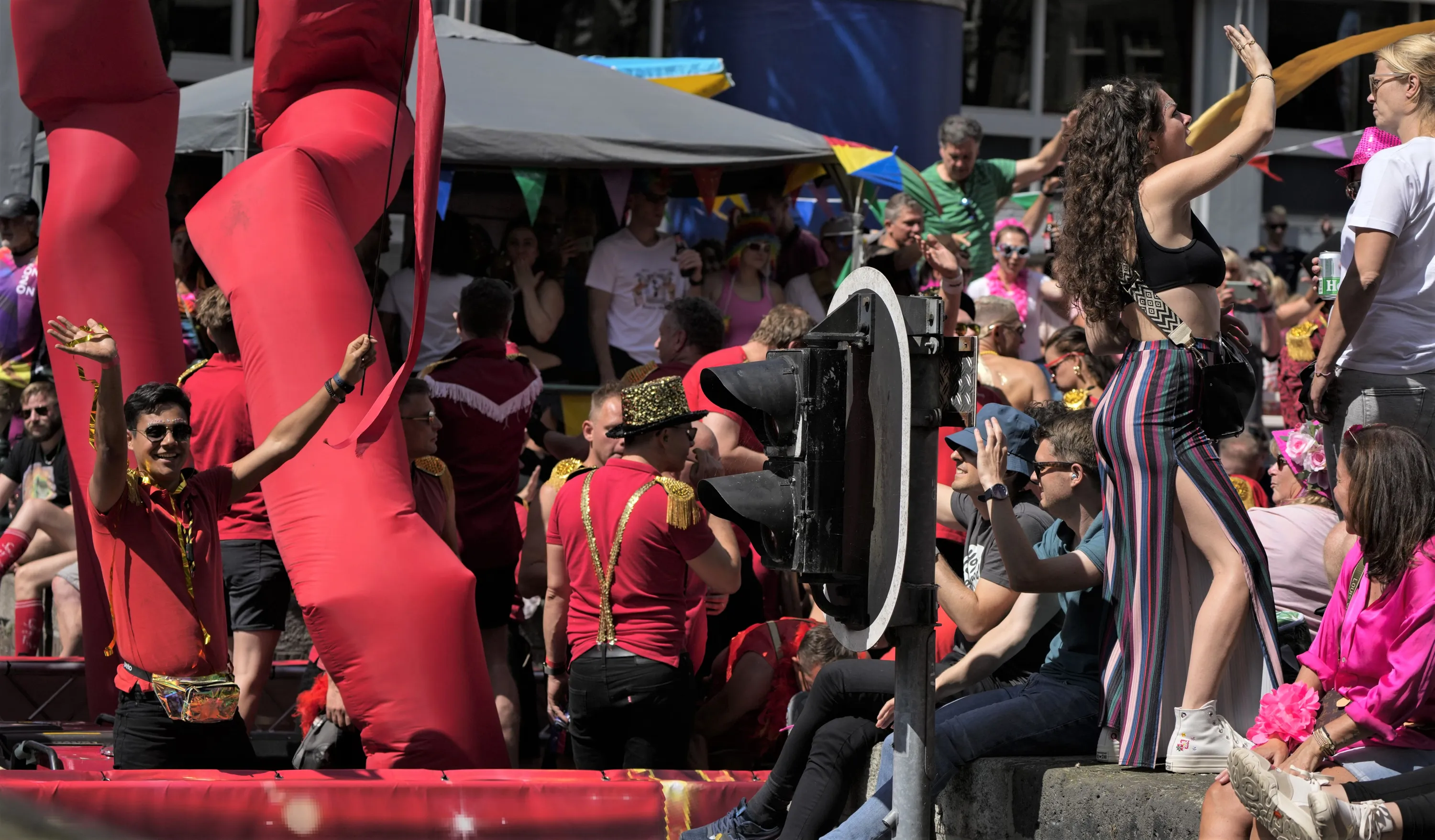Hundreds of thousands of people lined canals in the Dutch capital to watch the colorful spectacle of the Pride Canal Parade return for the 25th edition after the last two events were canceled due to the COVID-19 pandemic, in Amsterdam, Netherlands, Saturday, August 6, 2022. (Photo by Peter Dejong/AP Photo)