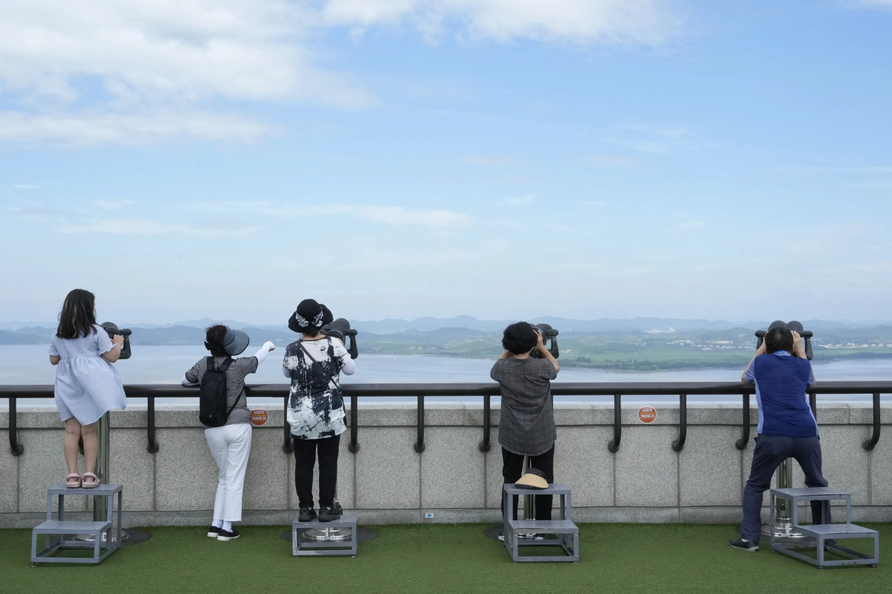 Visitors watch the North Korea side from the Unification Observation Post in Paju, South Korea, near the border with North Korea, Saturday, July 30, 2022. North Korea on Saturday reported no new fever cases for the first time since it abruptly admitted to its first domestic COVID-19 outbreak and placed its 26 million people under more draconian restrictions in May. But some experts say North Korea has likely manipulated the scale of illness and deaths to help leader Kim Jong Un maintain absolute control. (Photo by Ahn Young-joon/AP Photo)