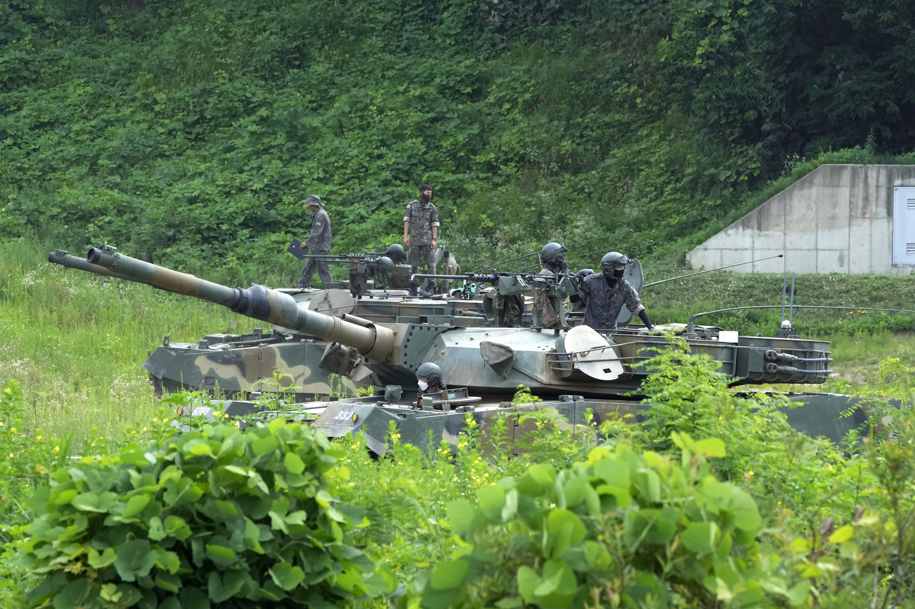 South Korean army soldiers prepare for an exercise at a training field in Paju, South Korea, near the border with North Korea, Wednesday, July 27, 2022. North Korean leader Kim Jong Un warned he's ready to use his nuclear weapons in potential military conflicts with the United States and South Korea, state media said, as he unleashed fiery rhetoric against rivals he says are pushing the Korean Peninsula to the brink of war. (Photo by Ahn Young-joon/AP Photo)