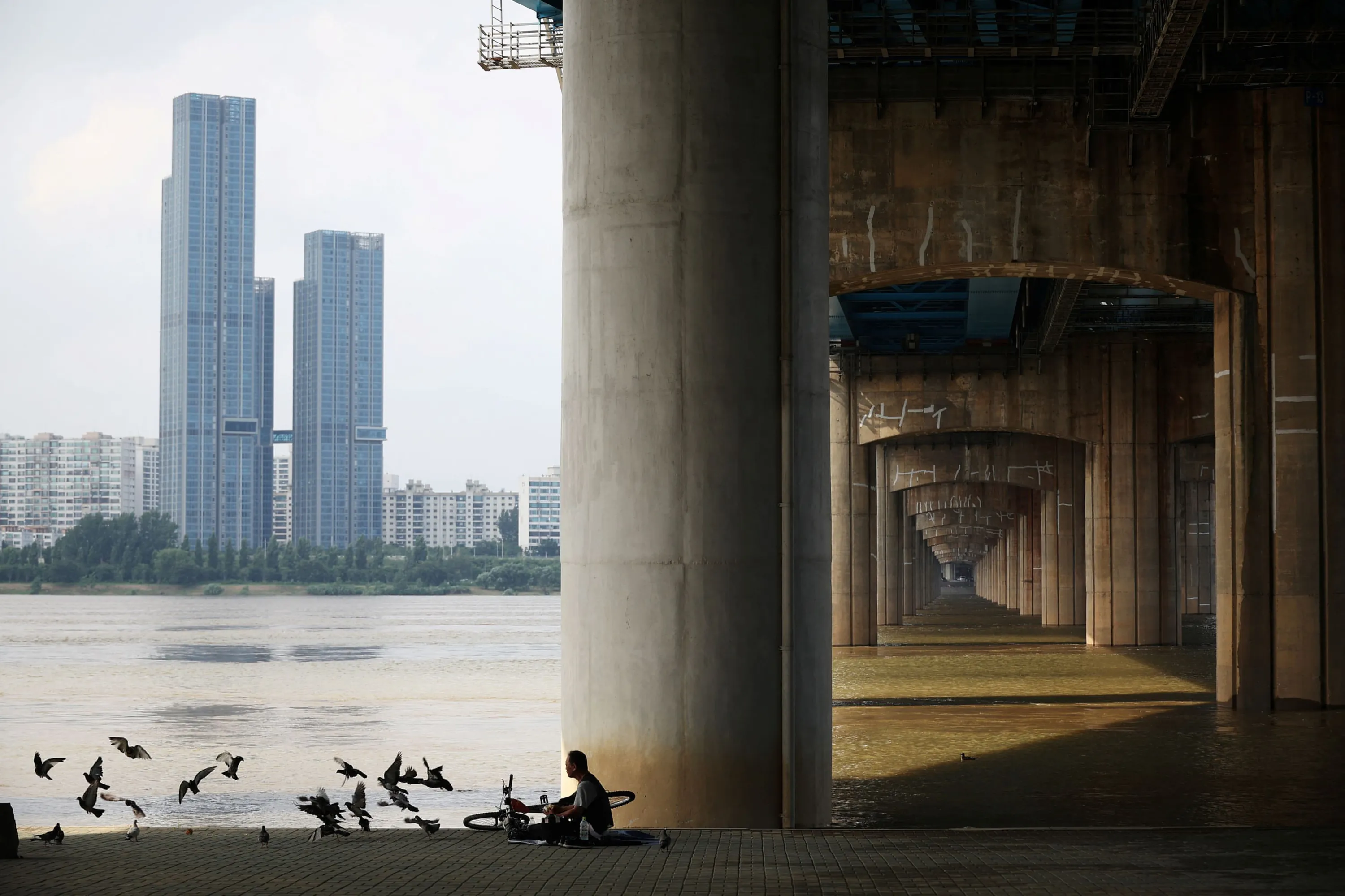 A man rests underneath a bridge at a Han river park in Seoul, South Korea on August 3, 2022. (Photo by Kim Hong-Ji/Reuters)