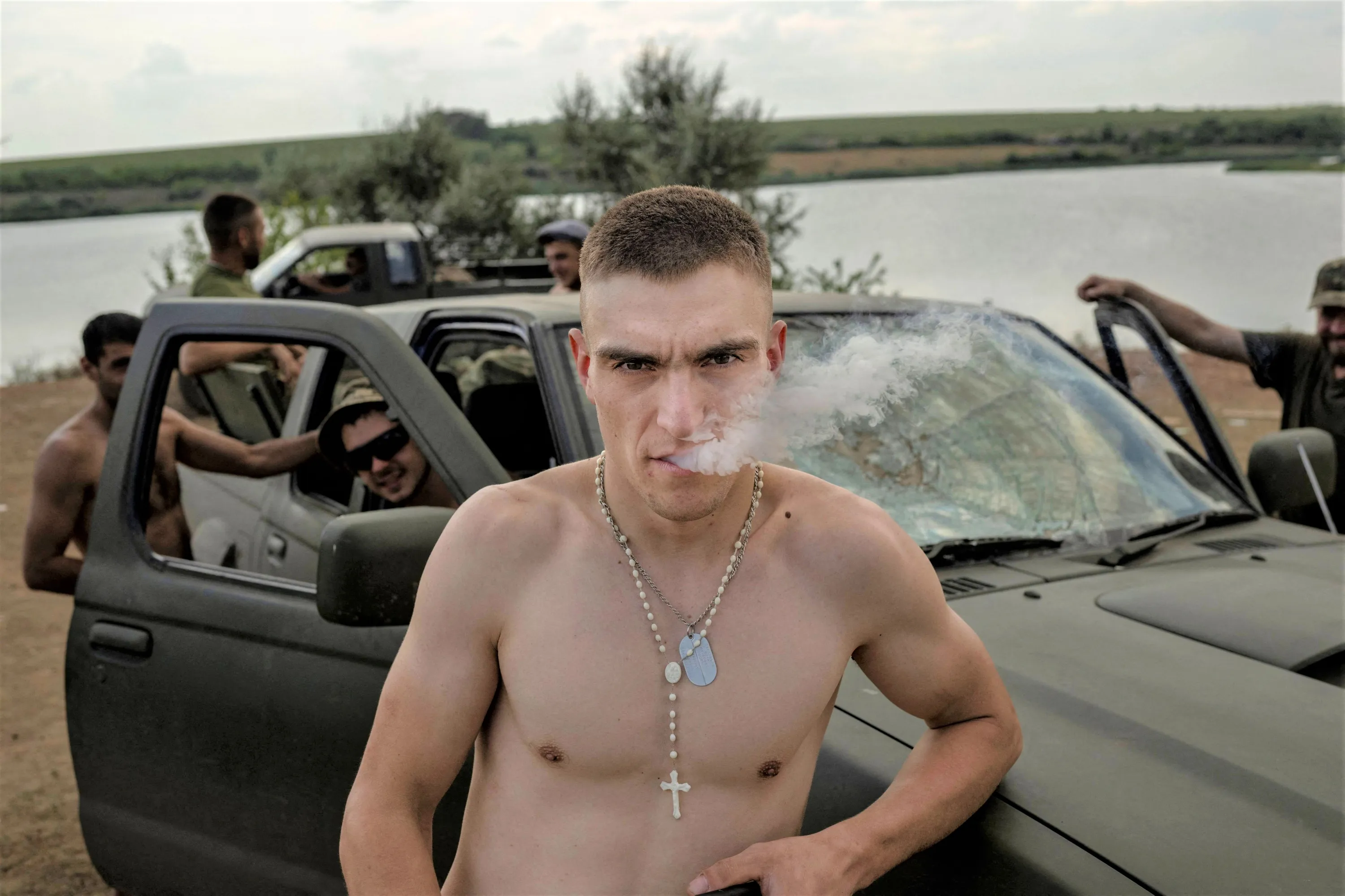 Ukranien soldiers take rest some km away from the frontline in Donbass region on August 10, 2022, amid Russian invasion of Ukraine. (Photo by Bulent Kilic/AFP Photo)