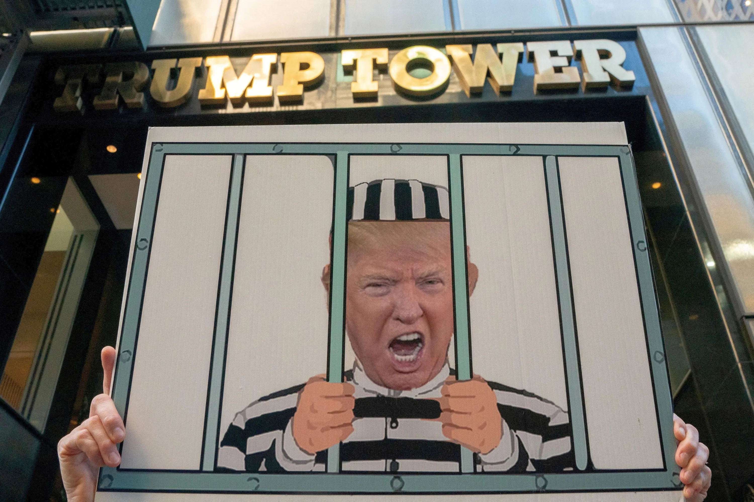 A protester calling for Donald Trump’s arrest holds a sign in front of Trump Tower the morning after former U.S. President Donald Trump said that FBI agents raided his Mar-a-Lago Palm Beach home, in New York City on August 10, 2022. (Photo by David “Dee” Delgado/Reuters)