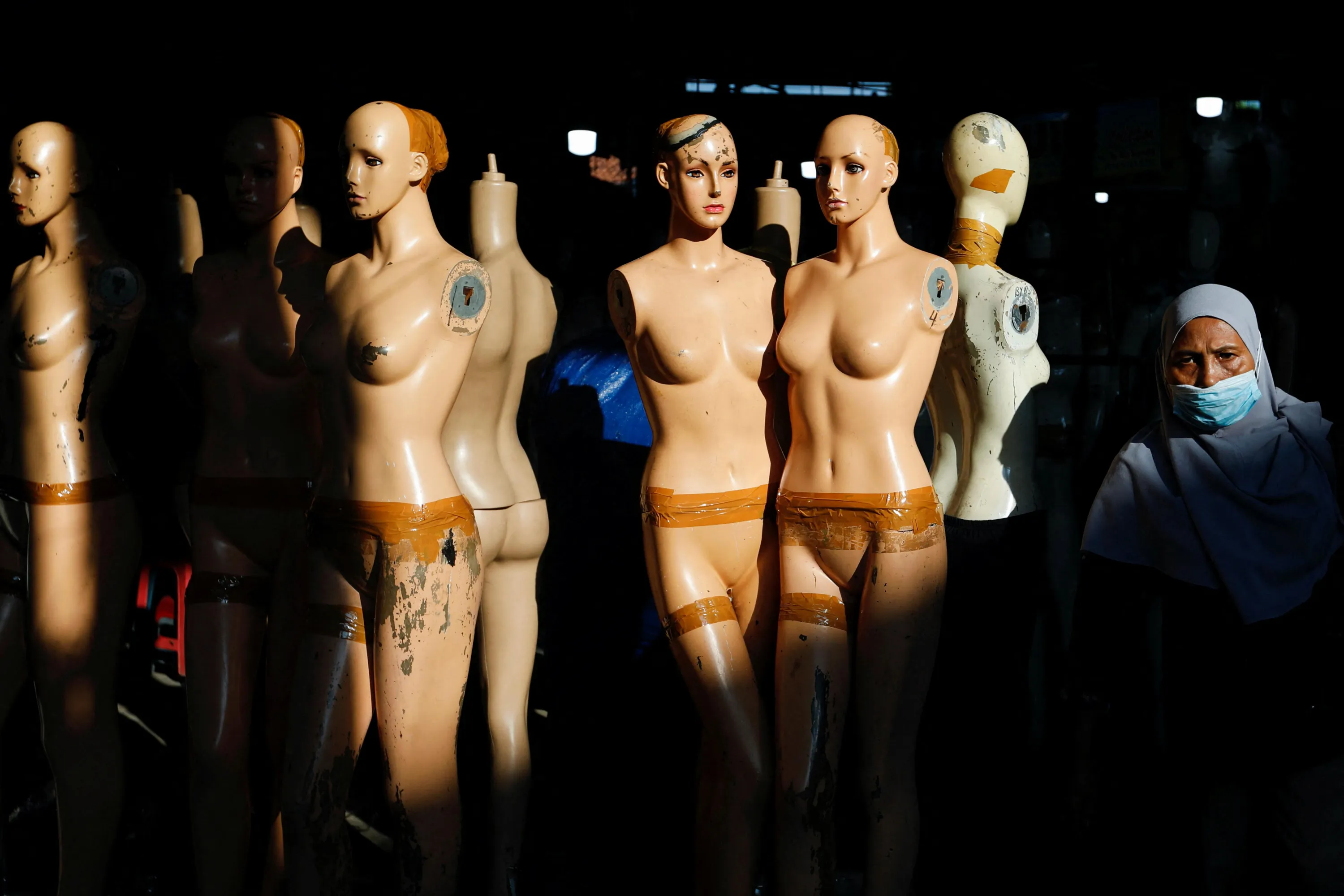 A woman walks near mannequins at Tanah Abang textile market in Jakarta, Indonesia on June 20, 2022. (Photo by Ajeng Dinar Ulfiana/Reuters)