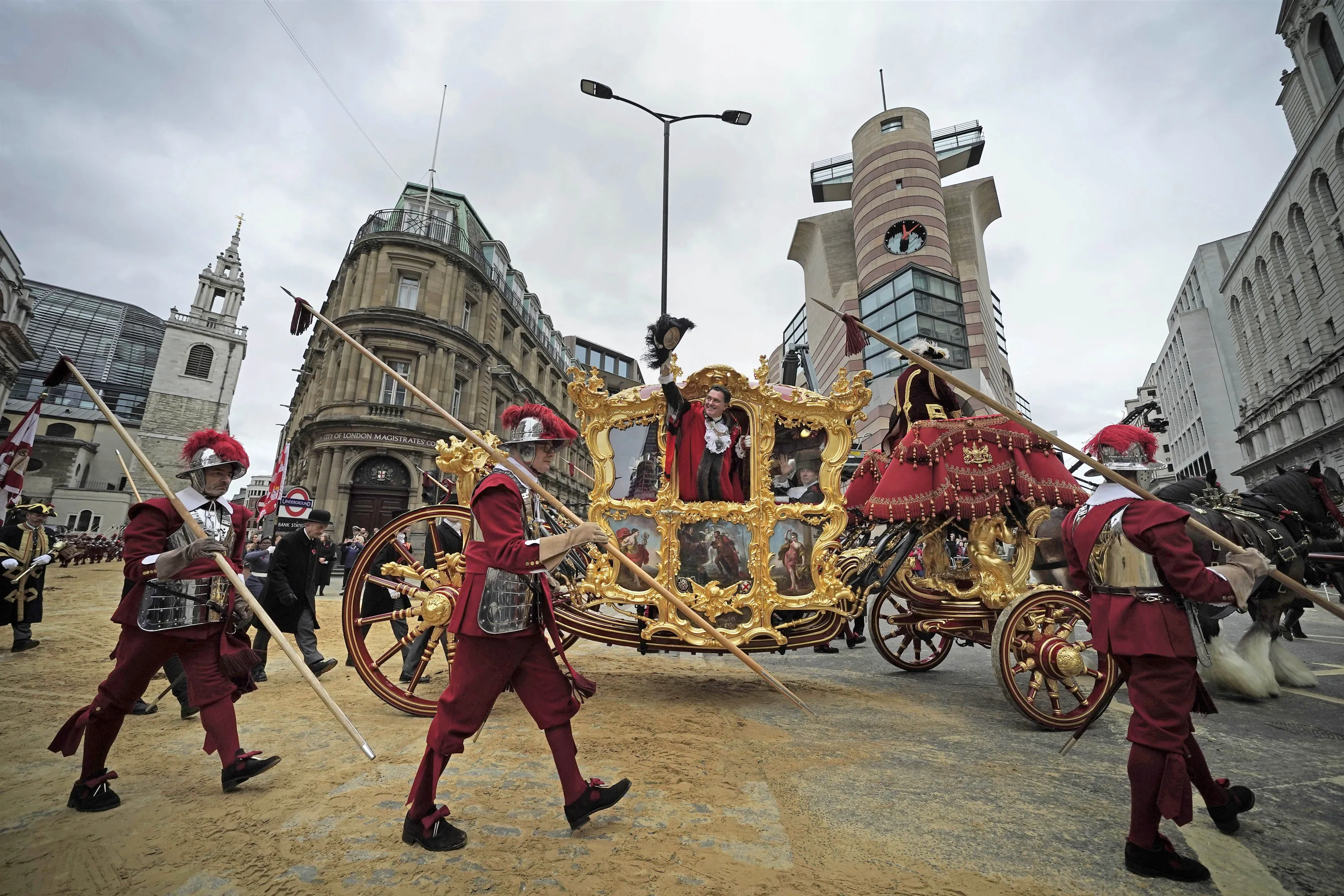 Vincent Keaveny, the 693rd Lord Mayor of the City of London, waves from the State Coach during the Lord Mayor's Show in the City of London on Saturday, November 13, 2021. (Photo by Aaron Chown/PA Images via Getty Images)
