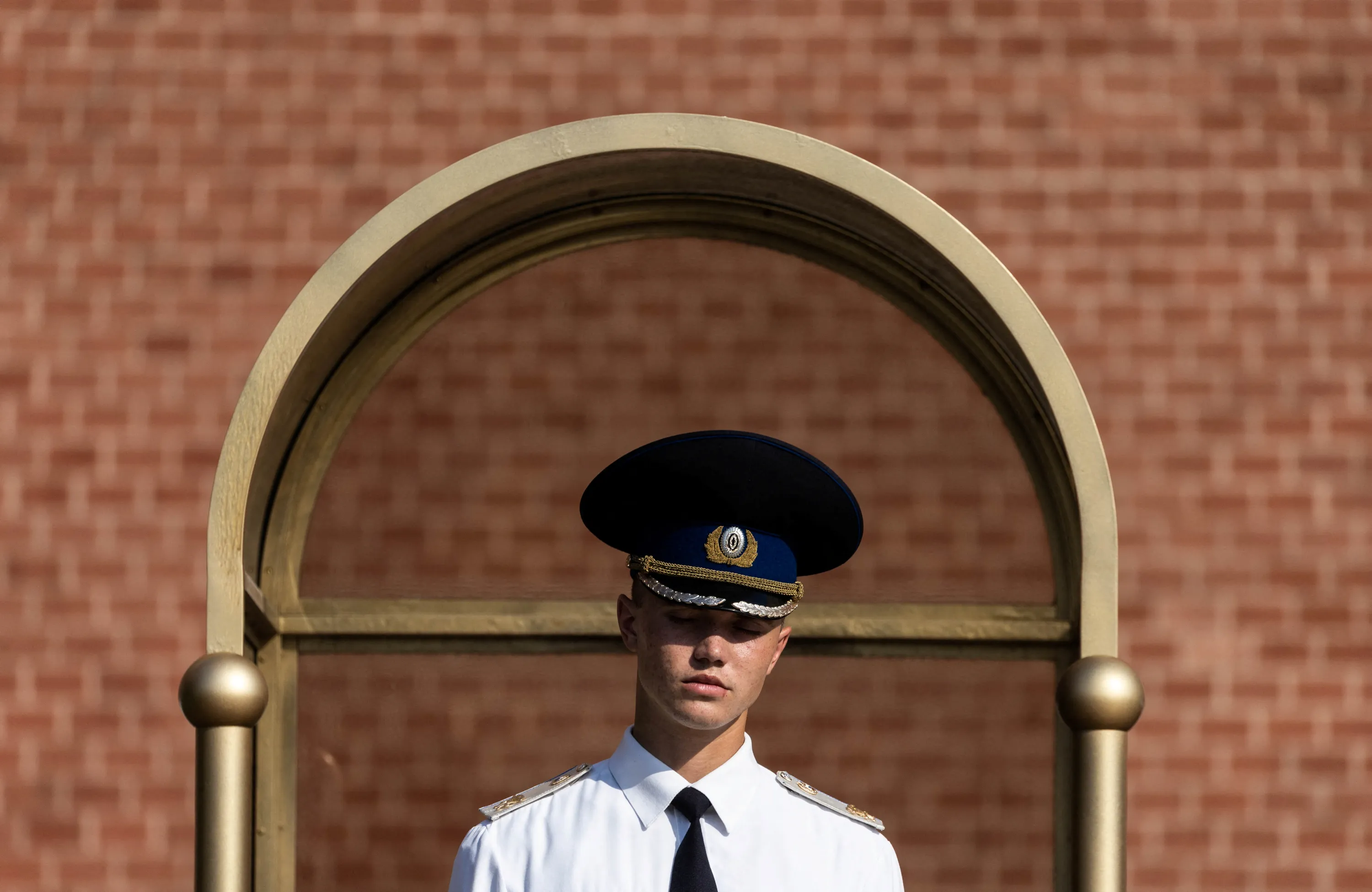 A honour guard stands guard near the Tomb of the Unknown Soldier during a hot day in Moscow, Russia on August 5, 2022. (Photo by Maxim Shemetov/Reuters)