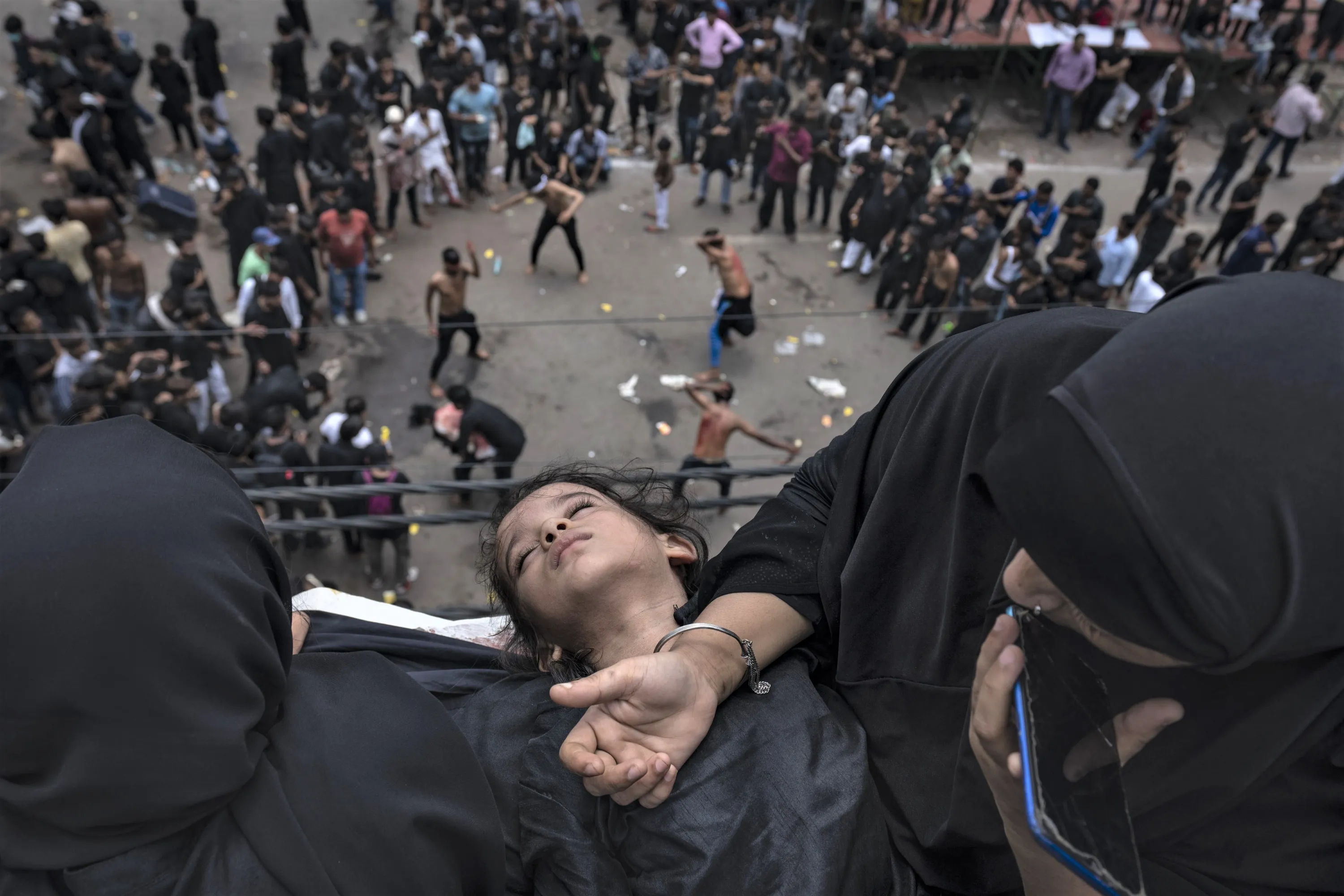 A child sleeps in the lap of her mother as they watch Shiite Muslims flagellate themselves during an Ashoura procession in New Delhi, India, Tuesday, August 9, 2022. Ashoura is the tenth day of Muharram, the first month of the Islamic calendar, observed around the world in remembrance of the martyrdom of Imam Hussein, the grandson of Prophet Mohammed. (Photo by Altaf Qadri/AP Photo)