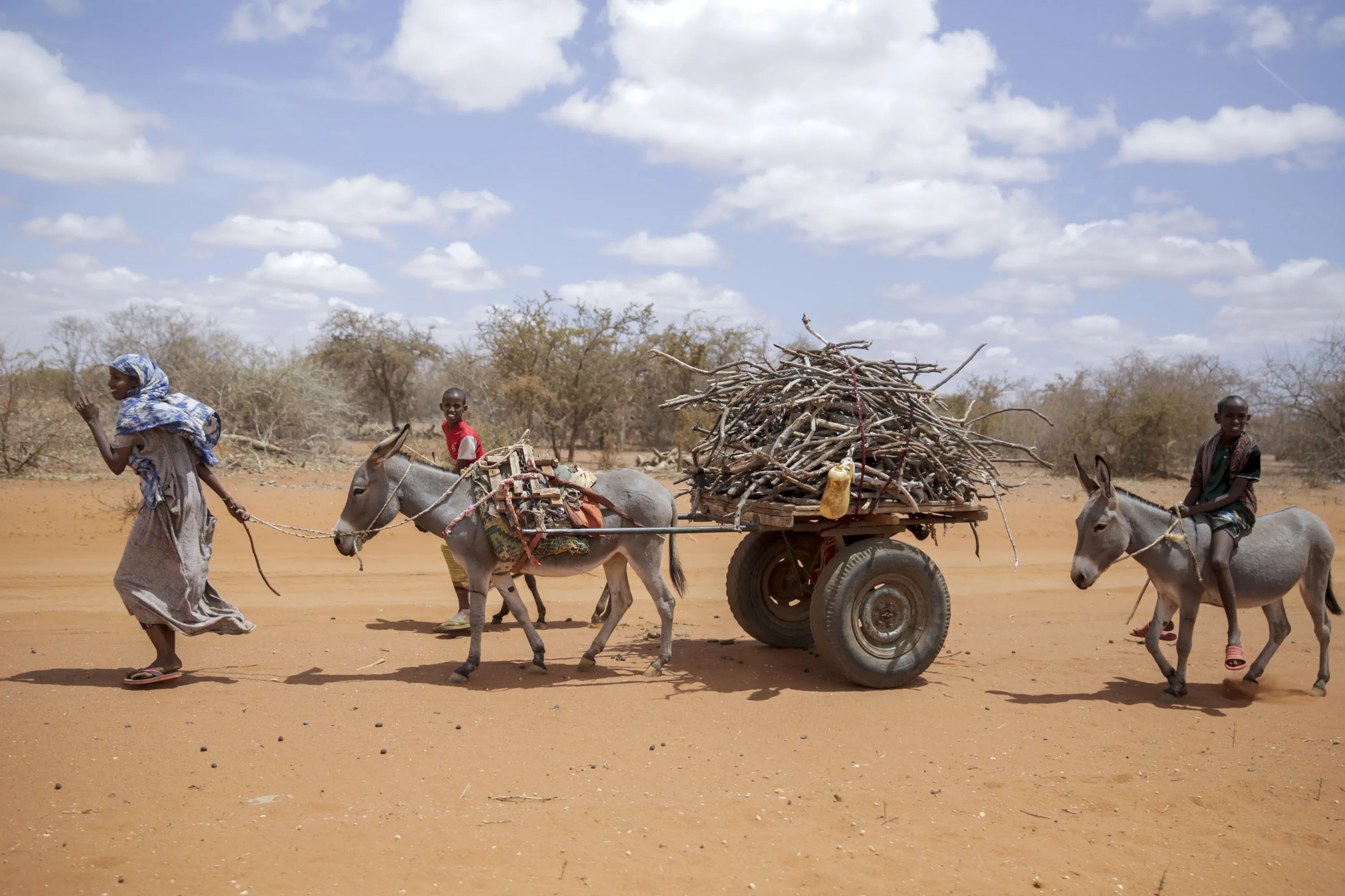 Residents walk next to their donkeys carrying wood in the village of Bulla Hagar in northern Kenya Friday, August 19, 2022. The United States is stepping up to buy about 150,000 metric tons of grain from Ukraine in the next few weeks for an upcoming shipment of food aid from ports no longer blockaded by war, the World Food Program chief has told The Associated Press. (Photo by Brian Inganga/AP Photo)
