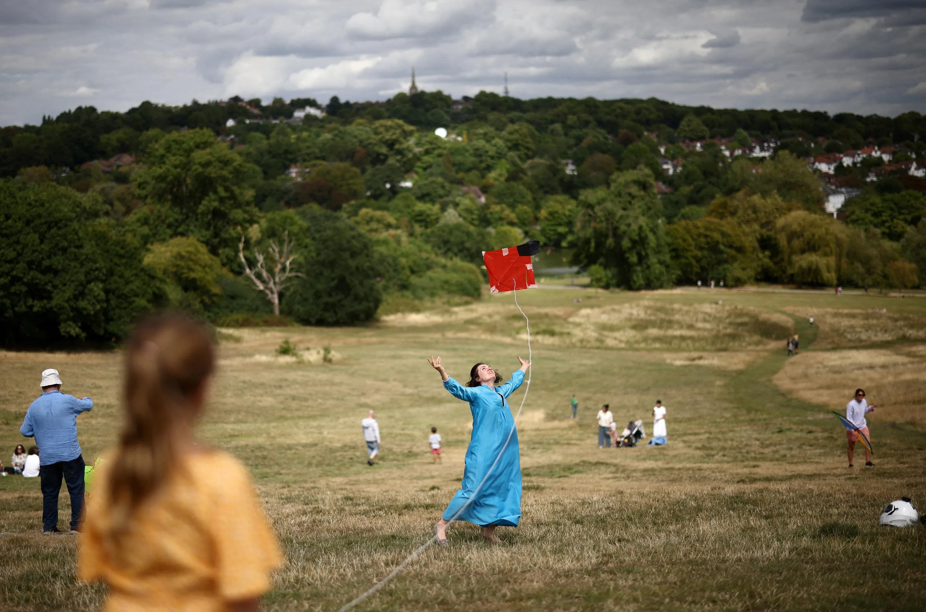 A person flies a kite on Parliament Hill during “Fly With Me”, a kite festival celebrating Afghan culture, held in solidarity with the people of Afghanistan during the one year anniversary of the country falling into Taliban rule, in London, Britain on August 20, 2022. (Photo by Henry Nicholls/Reuters)