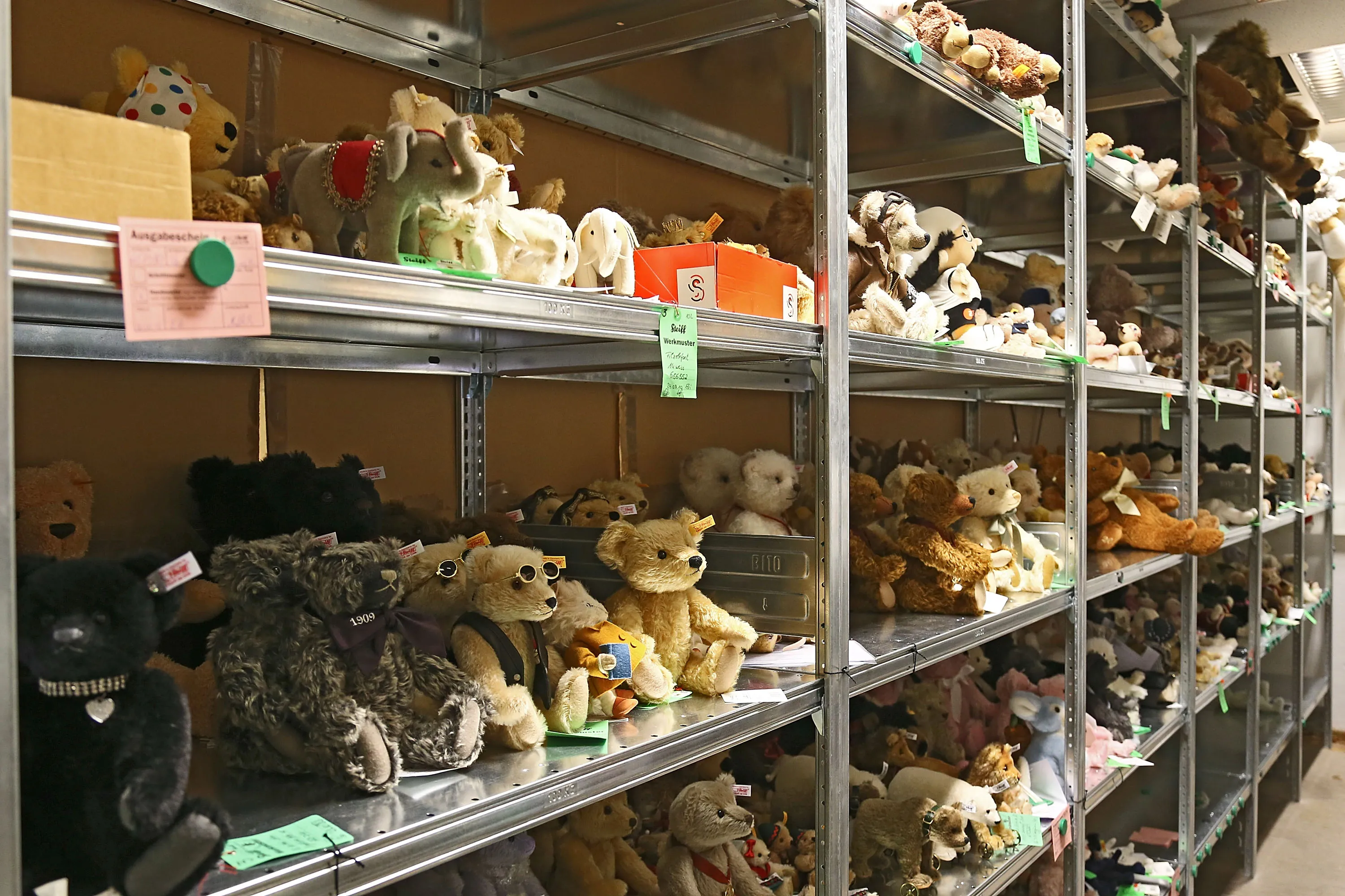 GIENGEN, GERMANY - NOVEMBER 23: Stuffed toys fill shelves at the Steiff stuffed toy factory on November 23, 2012 in Giengen an der Brenz, Germany. Founded by seamstress Margarethe Steiff in 1880, Steiff has been making stuffed teddy bears since the early 20th century ever since her nephew Richard Steiff exhibited the first commercially produced teddy bear in Europe in 1903. Teddy bears are among the most popular children's toys and the company is hoping for a strong Christmas season. (Photo by Thomas Niedermueller/Getty Images)