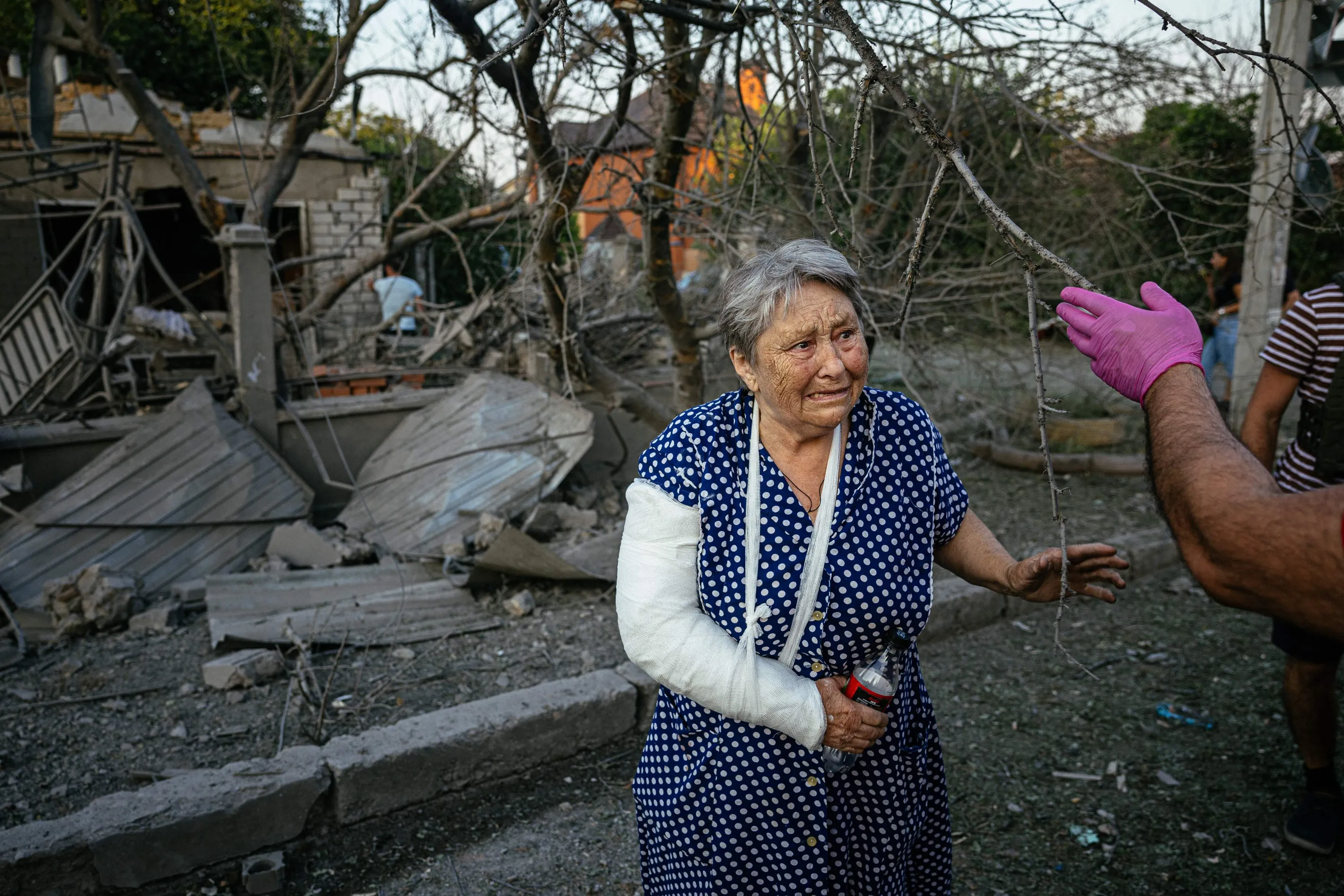 An injured woman reacts following a missile strike in Mykolaiv on August 29, 2022, amid the Russian invasion of Ukraine. Ukrainian forces have begun a counter-attack to retake the southern city of Kherson, which is currently occupied by Russian troops, a local government official said on Monday. (Photo by Dimitar Dilkoff/AFP Photo)