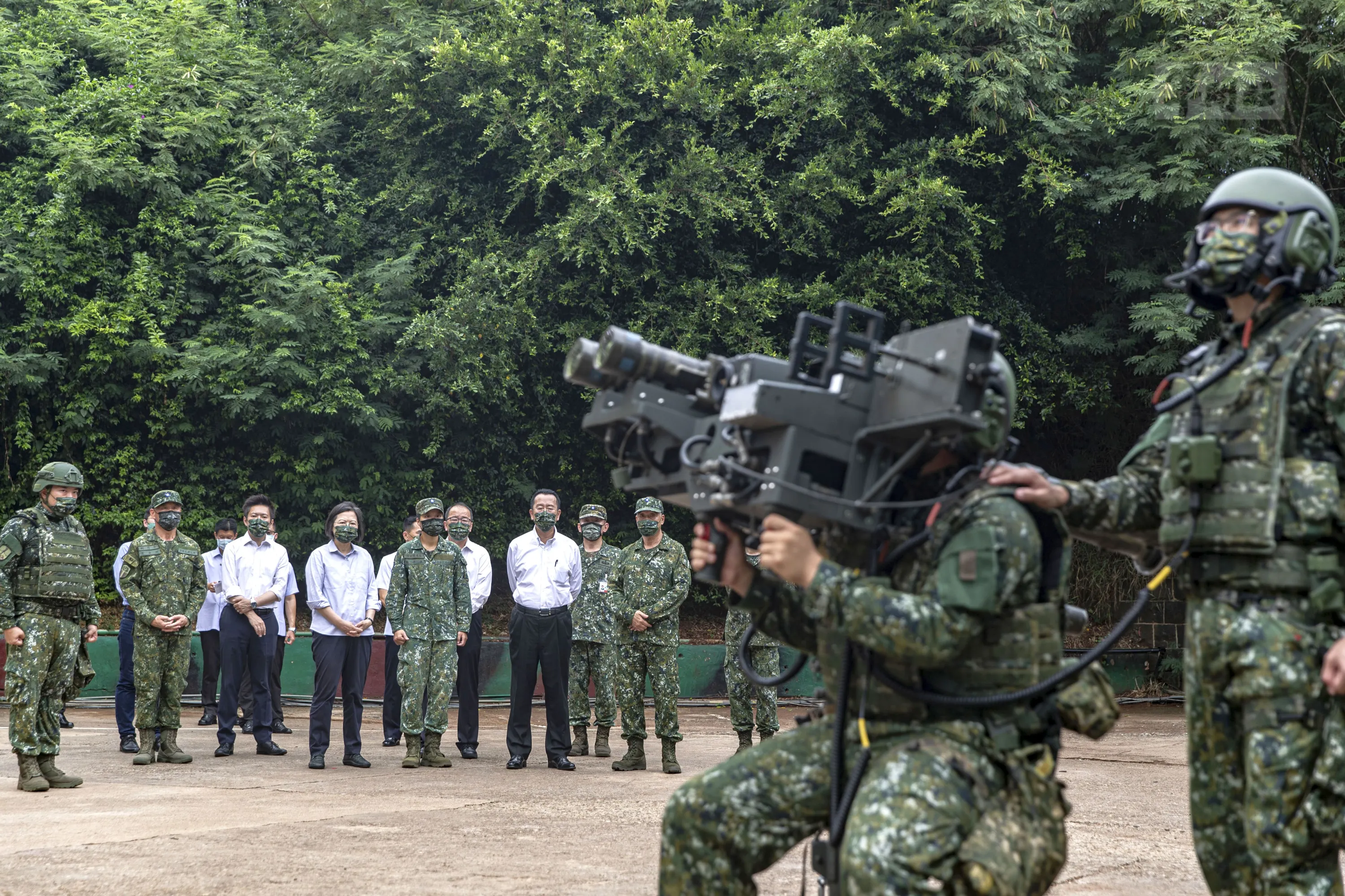 In this photo released by the Taiwan Ministry of National Defense, Taiwan's President Tsai Ing-wen watches soldiers operate equipment during a visit to a naval station on Penghu, an archipelago of several dozen islands off Taiwan's western coast on Tuesday, August 30, 2022. Tsai told the self-ruled island's military units Tuesday to keep their cool in the face of daily warplane flights and warship maneuvers by rival China, saying that Taiwan will not allow Beijing to provoke a conflict. visit to the She also inspected a radar squadron, an air defense company, and a navy fleet. (Photo by Taiwan Ministry of National Defense via AP Photo)