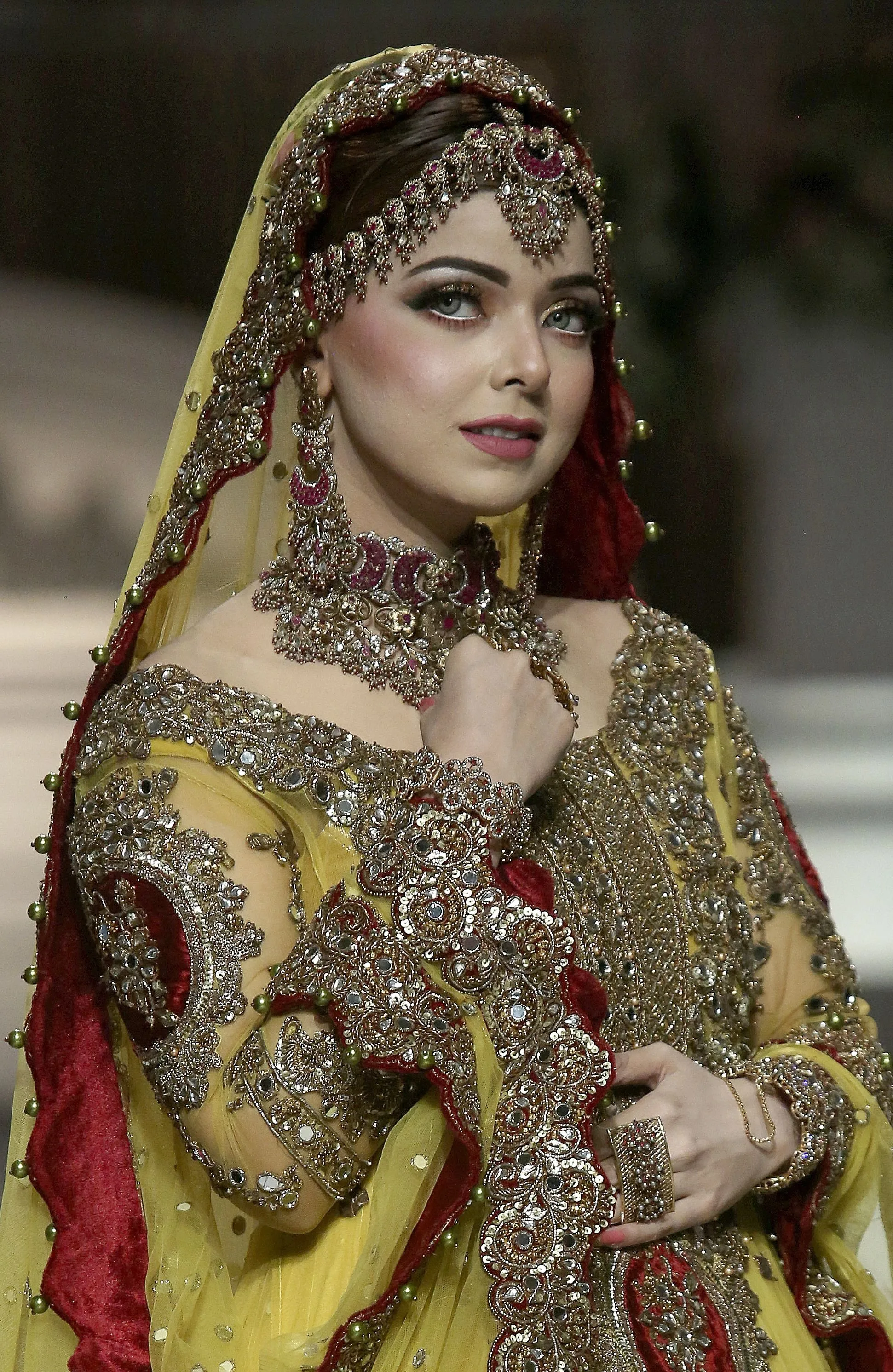 A model presents creation of a local designer Kashee's during a fashion show “Bridal Festive”, in Karachi, Pakistan, Thursday, August 18, 2022. (Photo by Fareed Khan/AP Photo)