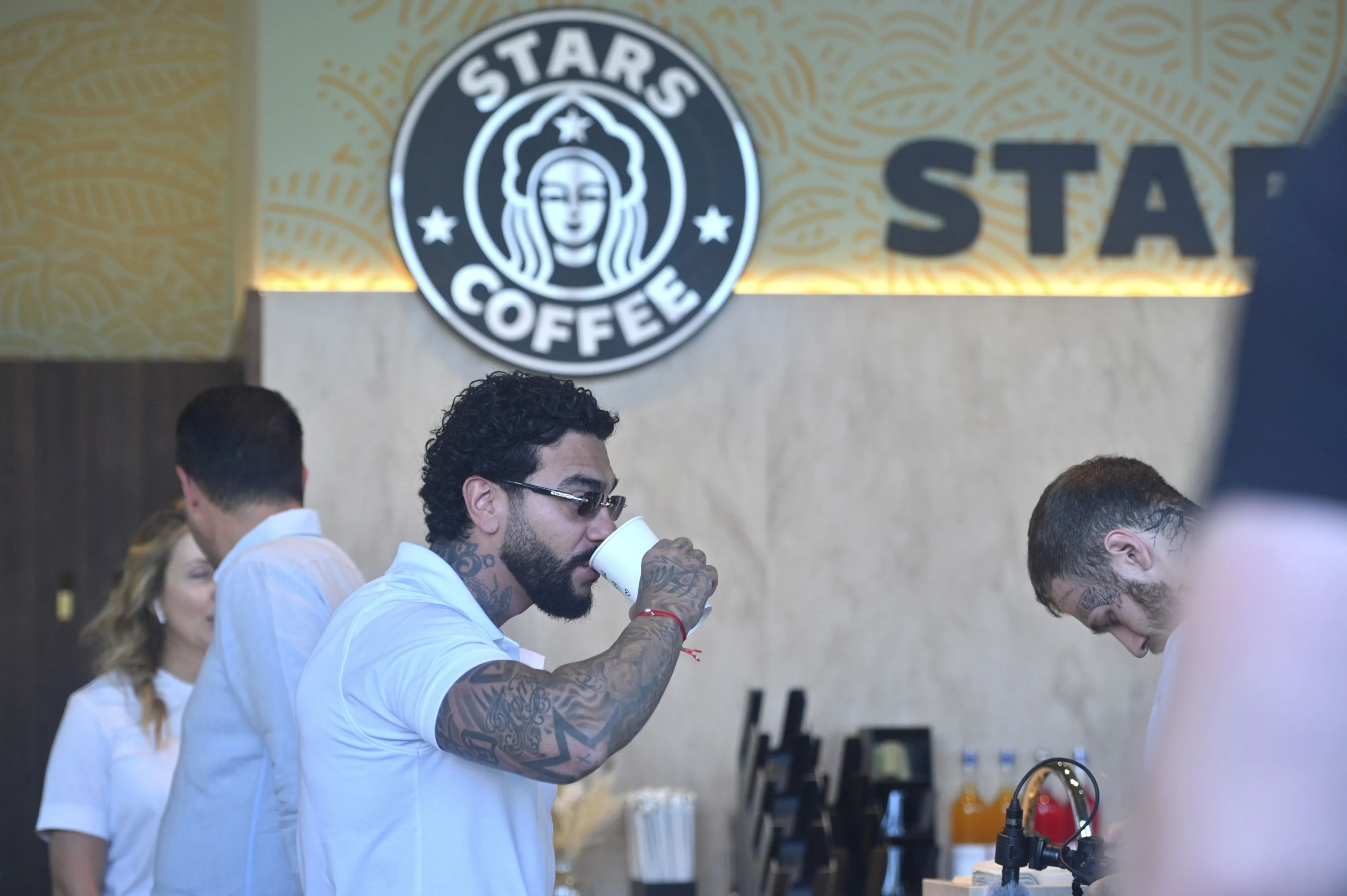 Russian singer and entrepreneur Timur Yunusov, better known as Timati, drinks coffee at a newly opened Stars Coffee coffee shop in the former location of the Starbucks coffee shop in Moscow, Russia, Thursday, August 18, 2022. A new chain of coffee shops opens Thursday in Moscow, after Russian singer and entrepreneur Timur Yunusov, better known as Timati, together with Russian restaurateur Anton Pinskiy bought the Starbucks stores following company's withdrawal from Russia. (Photo by Dmitry Serebryakov/AP Photo)