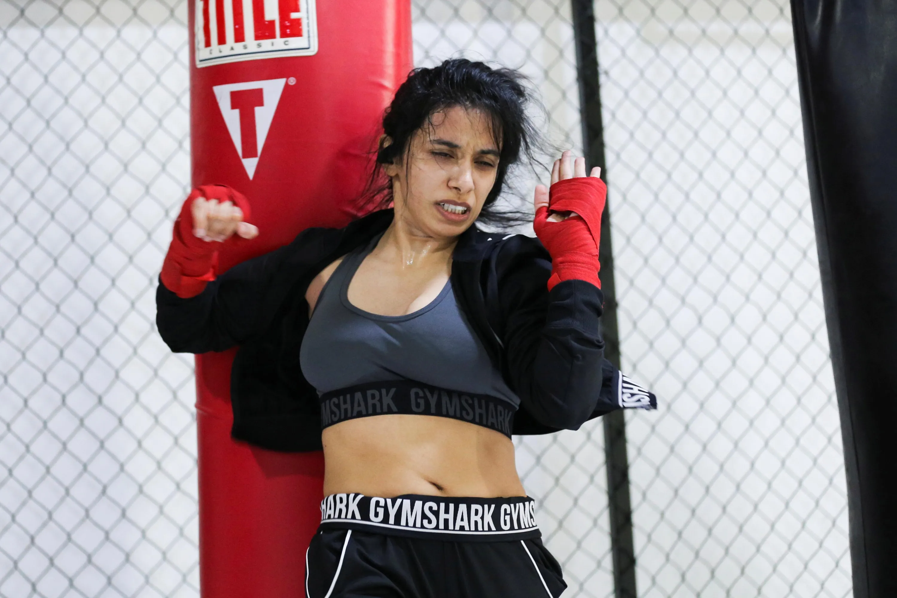 A Saudi girl exercises during her training session in the Fight Club gym in Riyadh, Saudi Arabia on December 8, 2021. (Photo by Ahmed Yosri/Reuters)