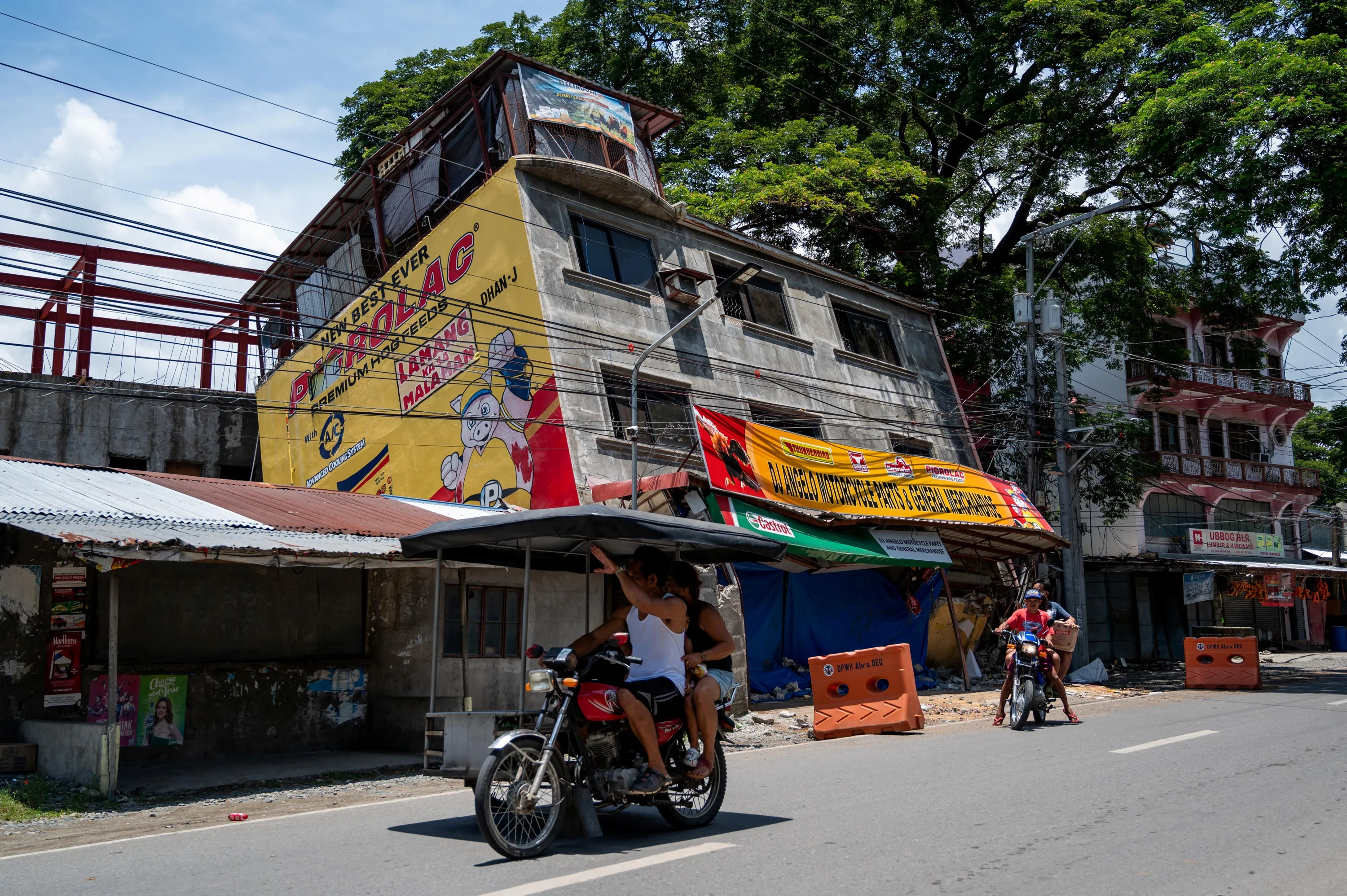 Motorists pass by a damaged building in the aftermath of an earthquake in Bangued, Abra province, Philippines, July 28, 2022. (Photo by Lisa Marie David/Reuters)