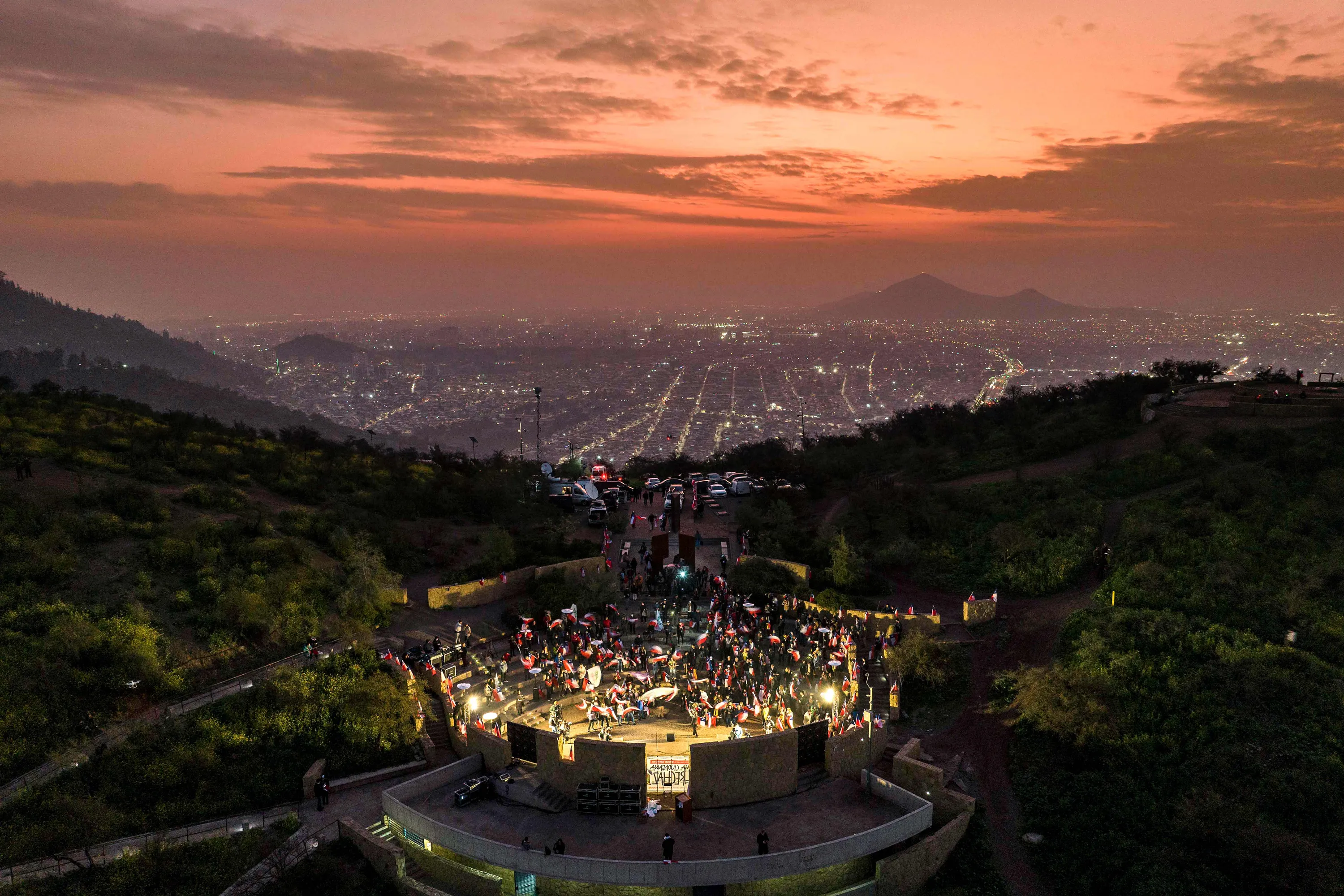 Aerial view showing opponents of Chile's new constitution attending the closing campaign rally in Santiago, on September 1, 2022, ahead of the upcomig referendum on September 4. (Photo by Javier Torres/AFP Photo)
