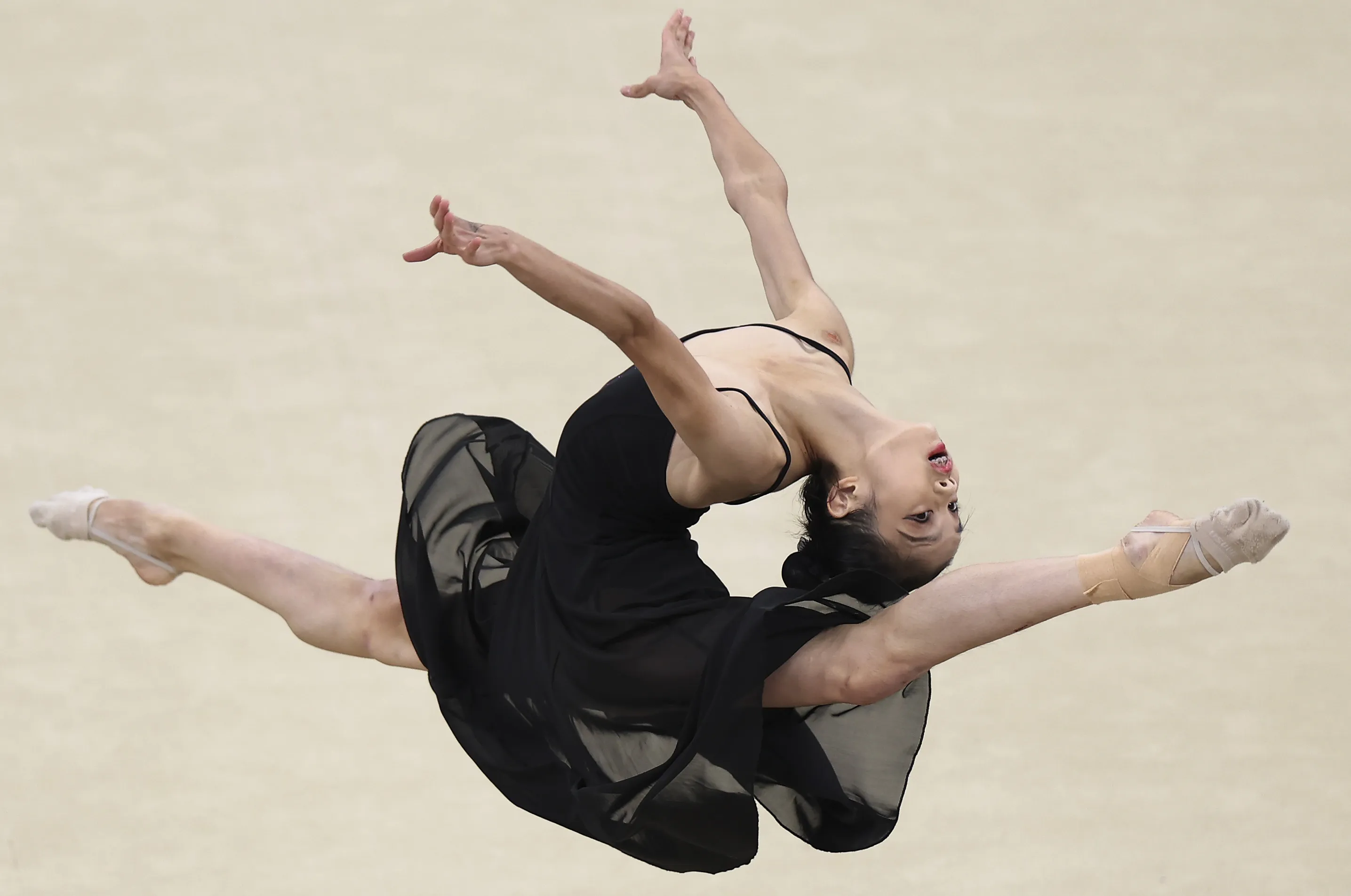 Liang Zixuan of China competes during the all-around event of the rhythmic gymnastics on day four of the National Rhythmic Gymnastics Championship at Huanglong Sports Center on August 26, 2022 in Hangzhou, China. (Photo by Lintao Zhang/Getty Images)