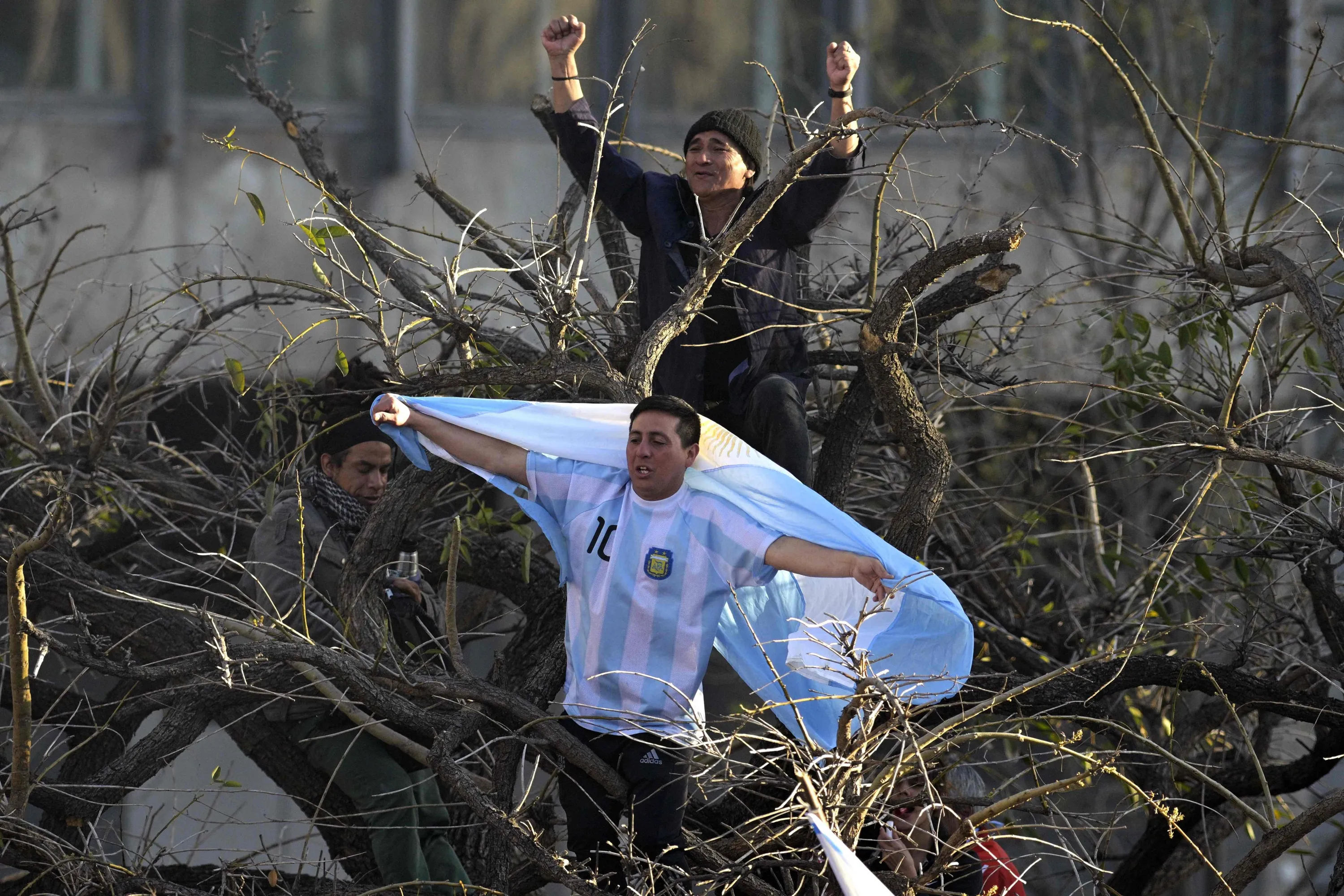 Supporters of Argentina's Vice President Cristina Fernandez de Kirchner are seen climbing a tree at Plaza de Mayo square in Buenos Aires on September 2, 2022. Messages of shock and solidarity poured in from around the world Friday after a man tried to shoot Argentine Vice President Cristina Kirchner in an attack captured on video Political and labor unions at home called for mass demonstrations countrywide to denounce Thursday's assault against Kircher, who survived because the handgun aimed at her face from very close range failed to go off. (Photo by Juan Mabromata/AFP Photo)