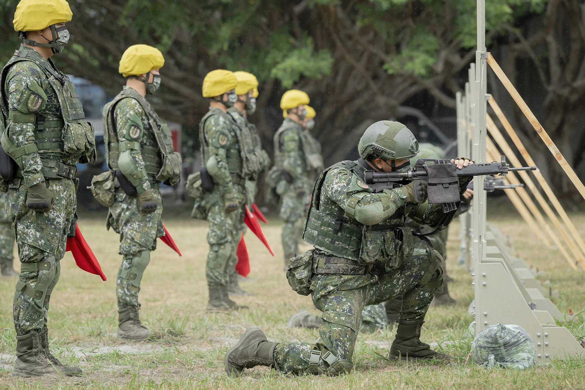 In this photo released by the Taiwan Presidential Office, Taiwanese soldiers go through a drill as Taiwan's President Tsai Ing-wen visits a camp in Hualien, in eastern Taiwan on Tuesday, September 6, 2022. Taiwanese President Tsai Ing-wen said Tuesday that China is conducting “cognitive warfare” by spreading misinformation in addition to its regular incursions into nearby waters and airspace intended at intimidating the self-governing island. (Photo by Taiwan Presidential Office via AP Photo)