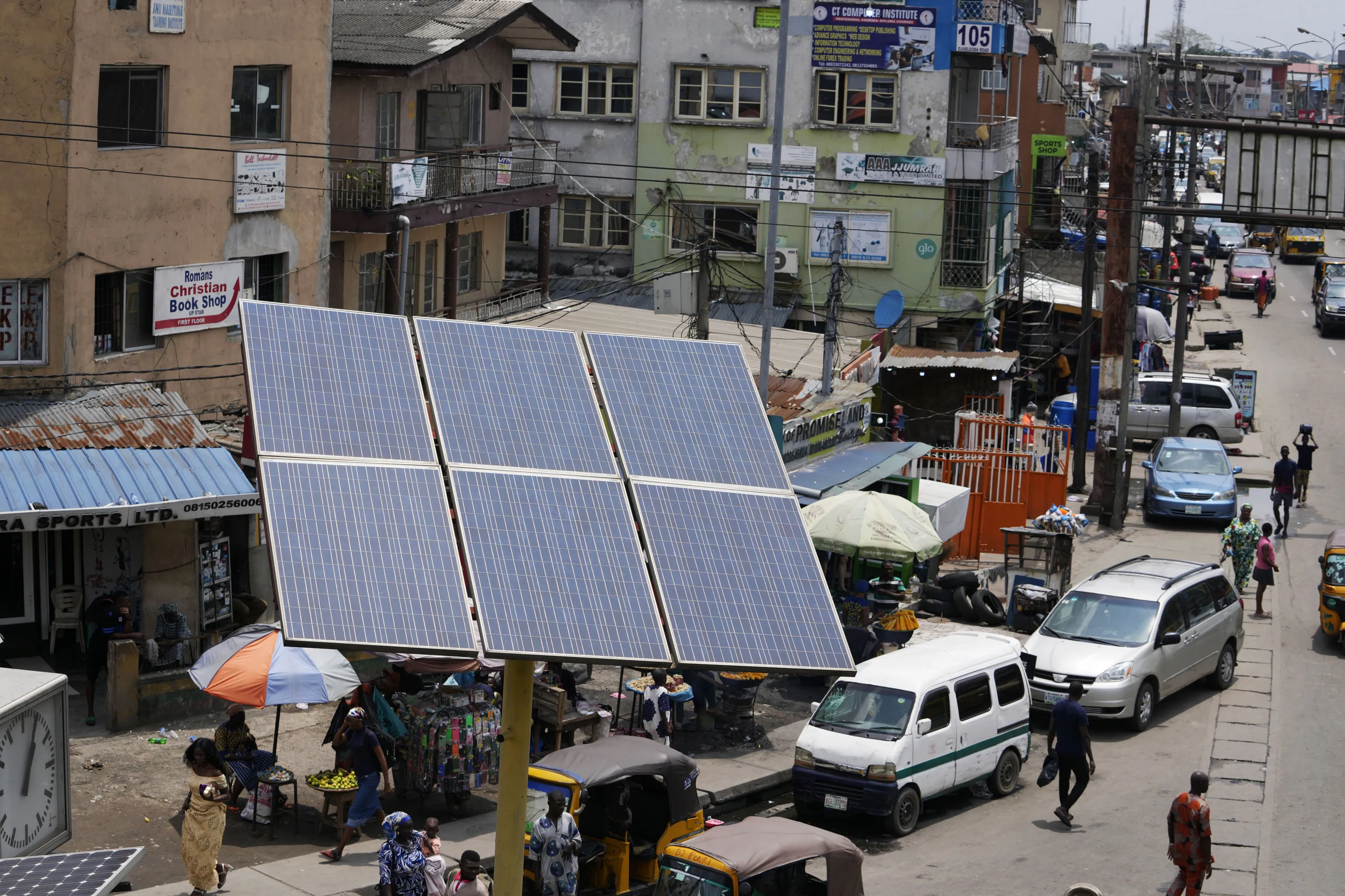 A solar panel sits near a street in the Ojuelegba neighborhood of Lagos, Nigeria, Saturday, August 20, 2022. Access to more and cleaner energy while continuing to grow economically will be a top priority for African nations in the upcoming United Nations climate conference in November, top officials and climate experts on the continent said. (Photo by Sunday Alamba/AP Photo)
