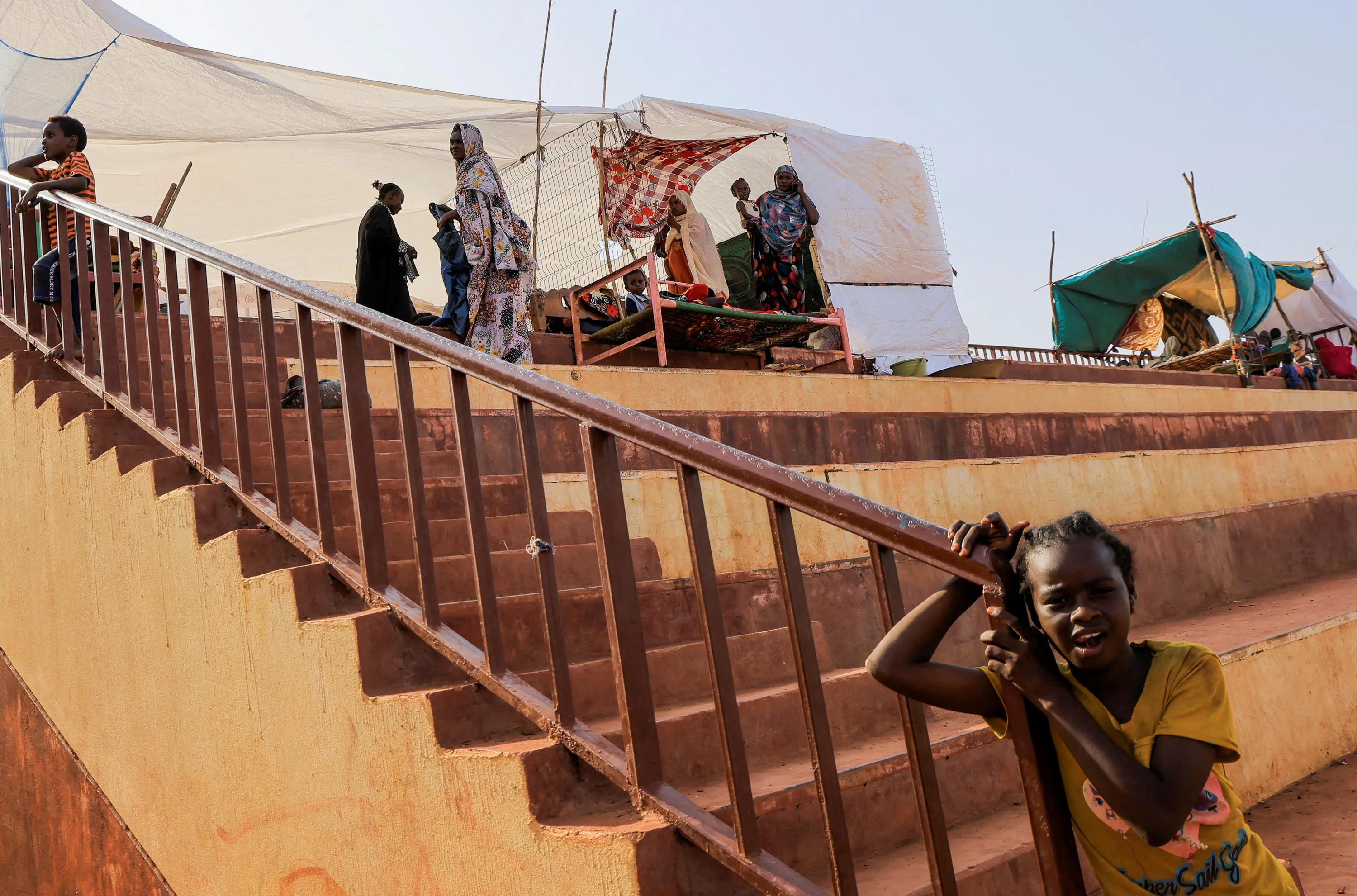 People rest inside a stadium after sustaining water damage to their houses during floods in Al-Managil locality in Jazeera State, Sudan on August 23, 2022. (Photo by Mohamed Nureldin/Reuters)