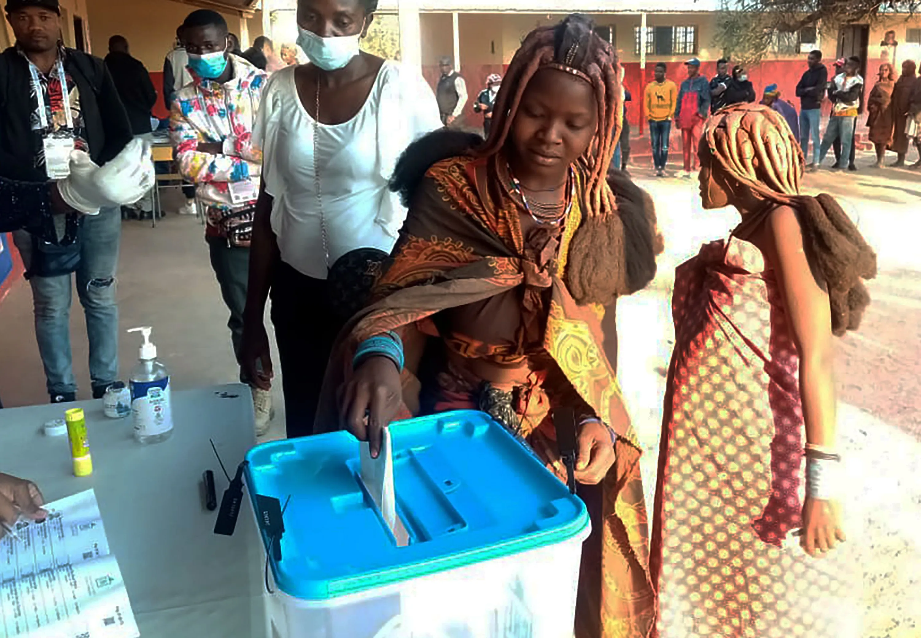 A voter casts her vote at a polling station in Luanda, Wednesday, August 24, 2022. President Joao Lourenco is running for a second five-year term while his party, the Peoples' Movement for the Liberation of Angola, known by its Portuguese acronym MPLA, is campaigning to extend its 47-year run as the country's ruling party. (Photo by AP Photo/Stringer)