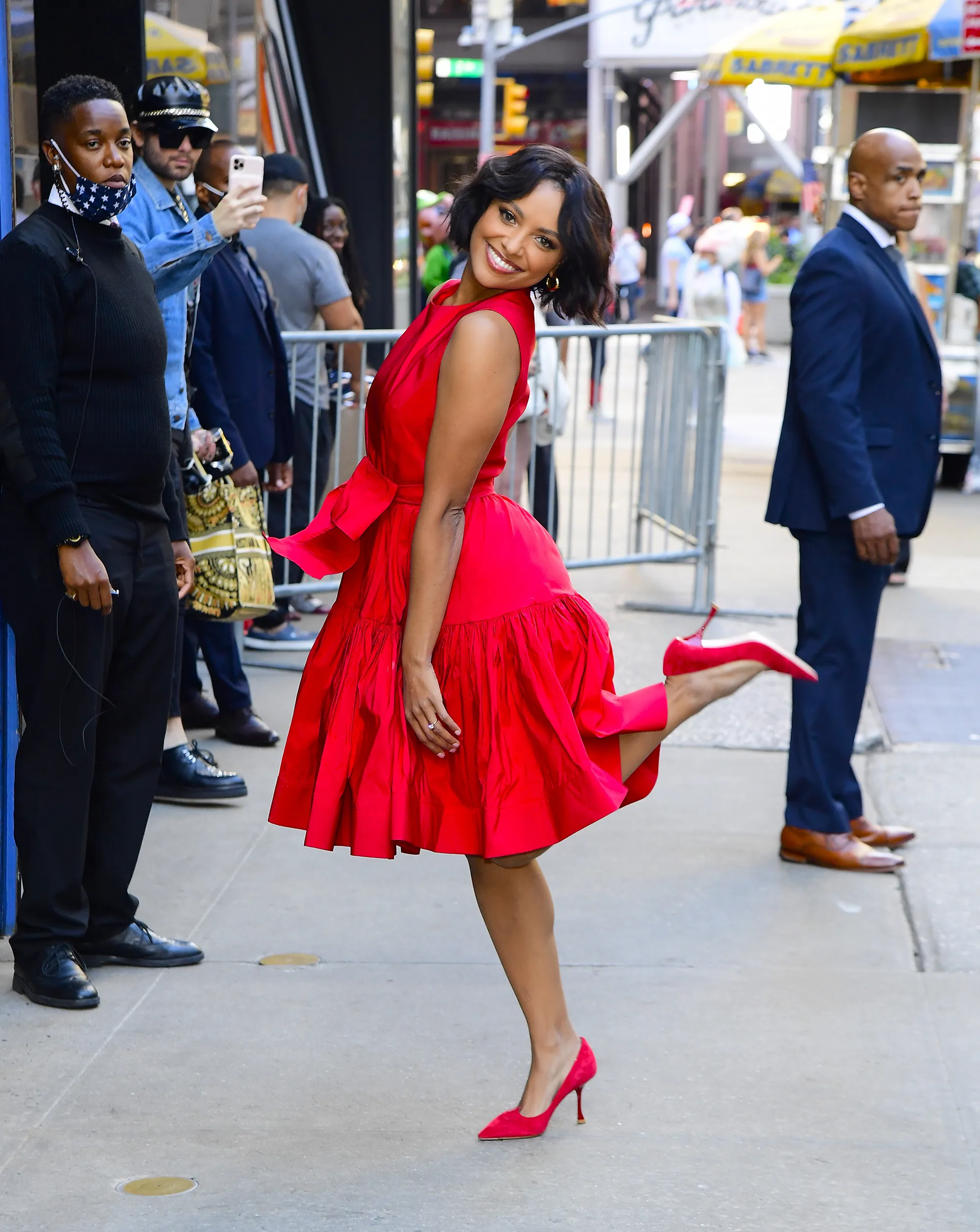 American actress Kat Graham is seen outside “Good Morning America” on September 1, 2022 in New York City. (Photo by Raymond Hall/GC Images)