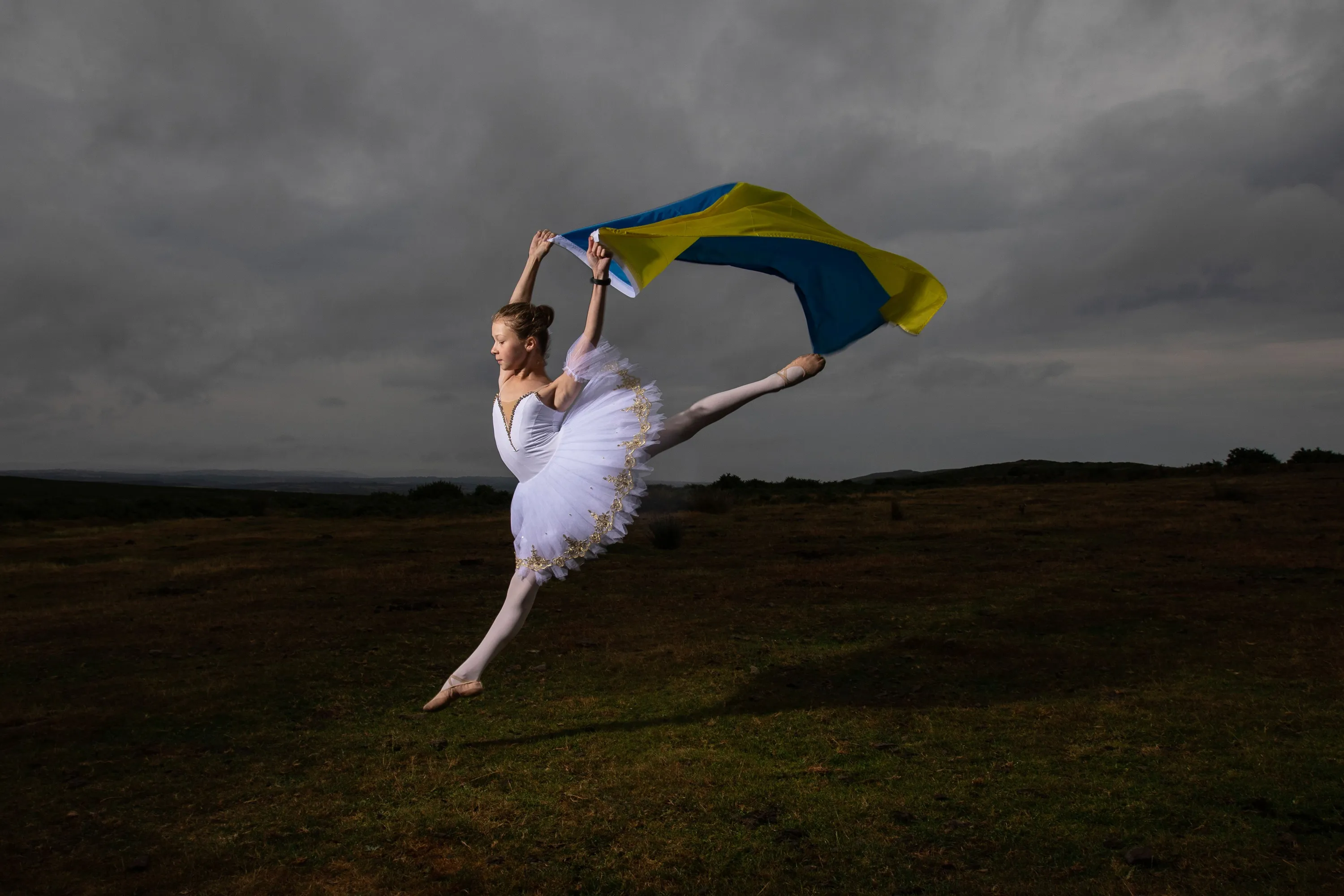 Accompanied with the colours of Ukrainian flag, Kateryna Andrushyna, aged 12, proudly wear and wave the flag in Swansea, United Kingdom on August 22, 2022 for Ukraine Independence Day, which is held on the 24th August. (Photo by Joann Randles/Cover Images)