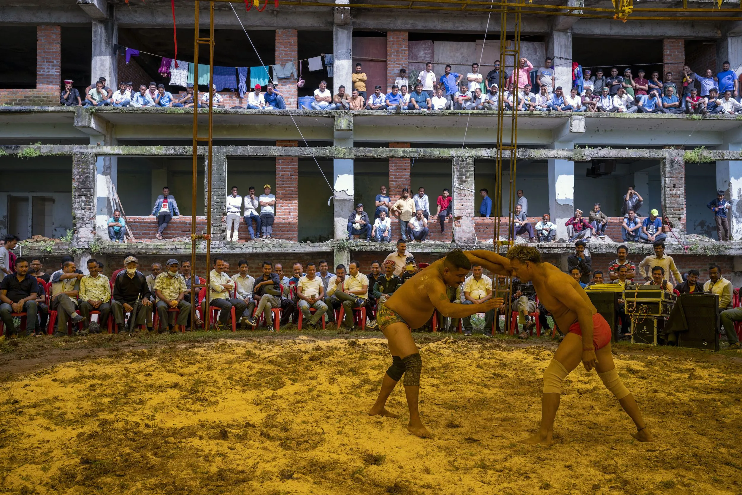 Wrestlers compete at a local fair in Dharmsala, India, Tuesday, September 6, 2022. (Photo by Ashwini Bhatia/AP Photo)