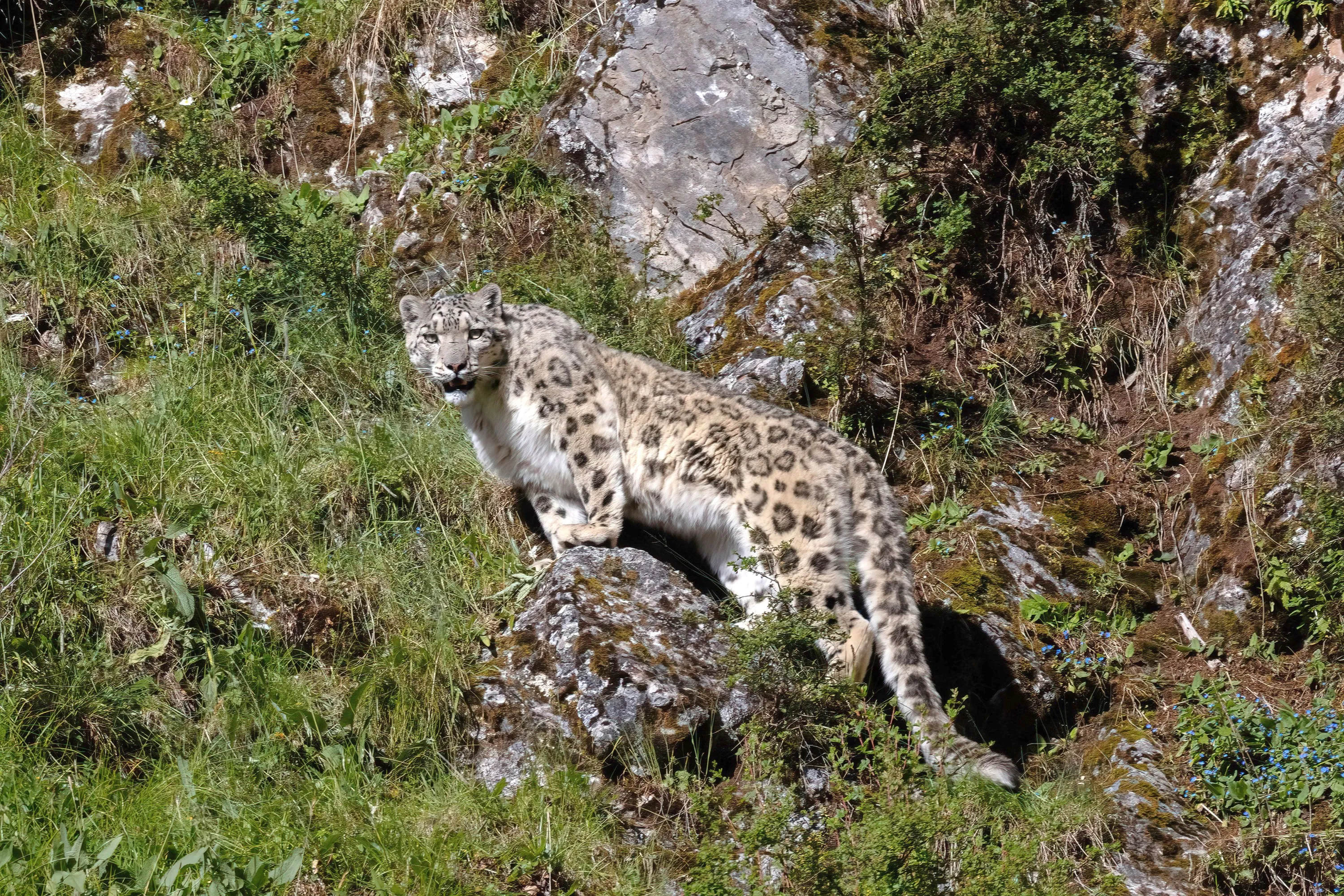 A snow leopard is pictured in Zadoi County of Yushu Tibetan Autonomous Prefecture, northwest China's Qinghai Province, August 6, 2022. (Photo by Xinhua News Agency/Rex Features/Shutterstock)
