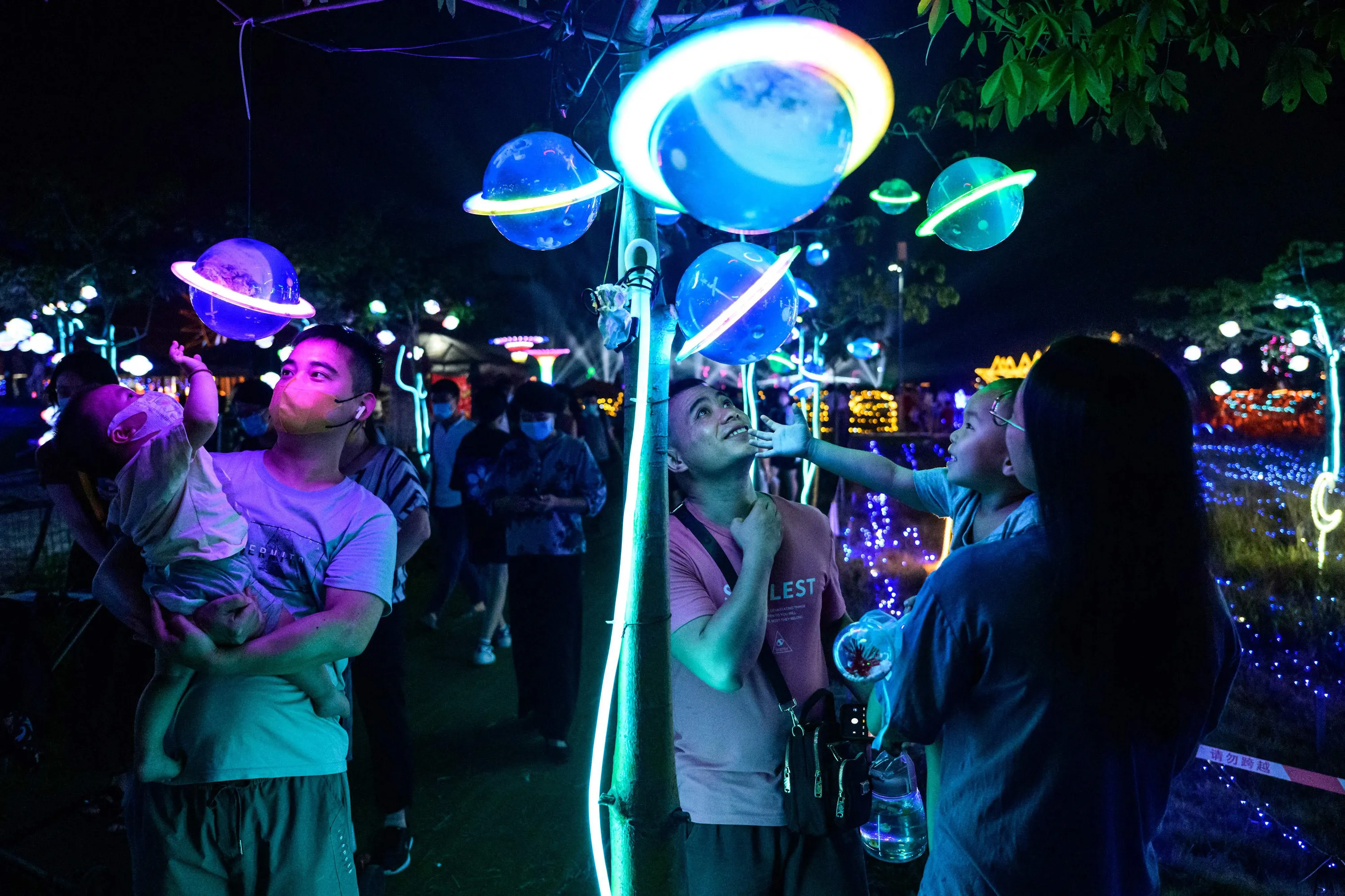 This photo taken on September 12, 2022 shows people visiting a lantern show during the Mid-Autumn Festival in Guangzhou in China's southern Guangdong province. (Photo by Reuters/China Stringer Network)