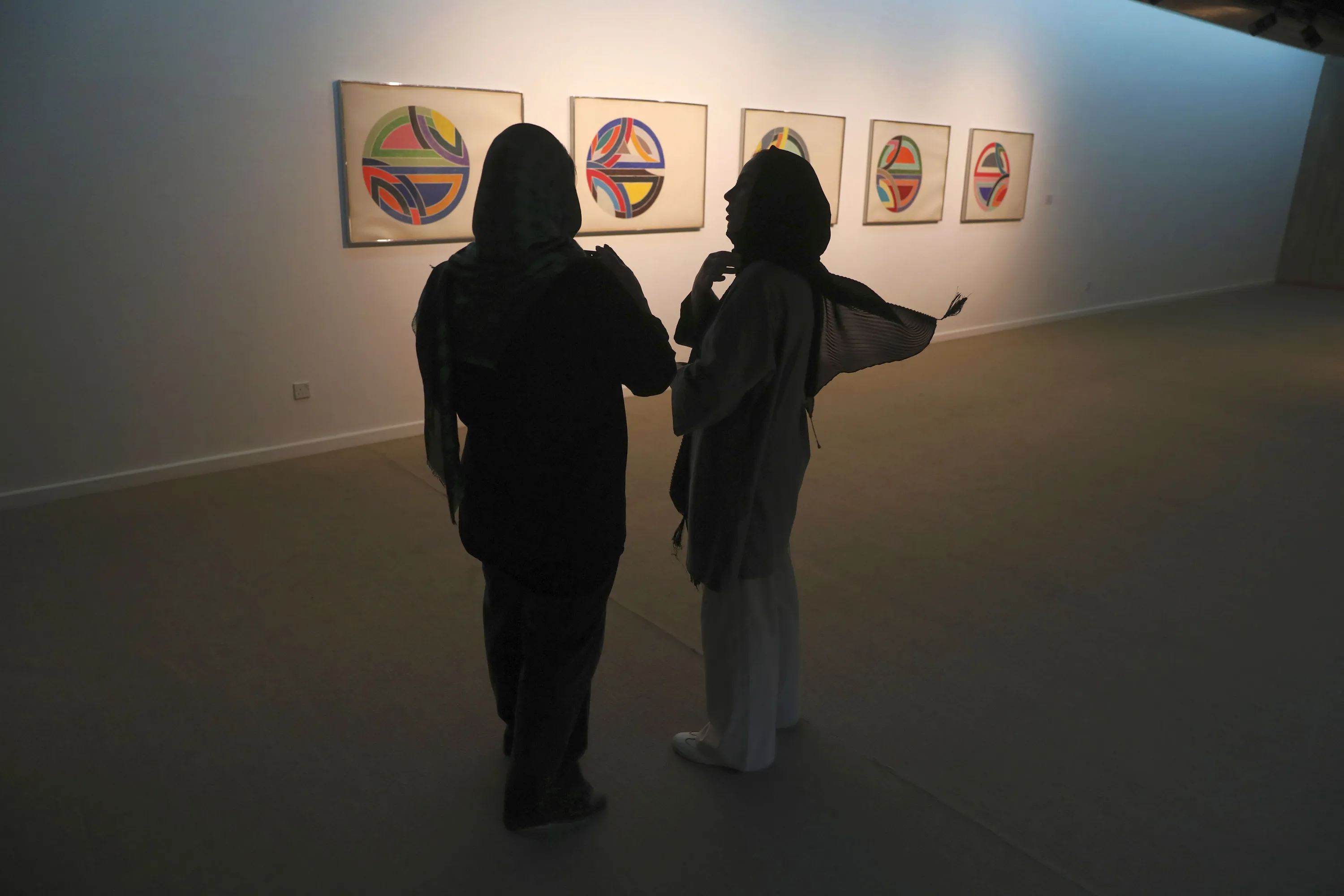 Two women visit a 19th and 20th-century American and European minimalist and conceptual masterpieces show at the Tehran Museum of Contemporary Art in Tehran, Iran, Tuesday, August 2, 2022. Some of the world’s most prized works of contemporary Western art have been unveiled for the first time in decades – in Tehran. (Photo by Vahid Salemi/AP Photo)