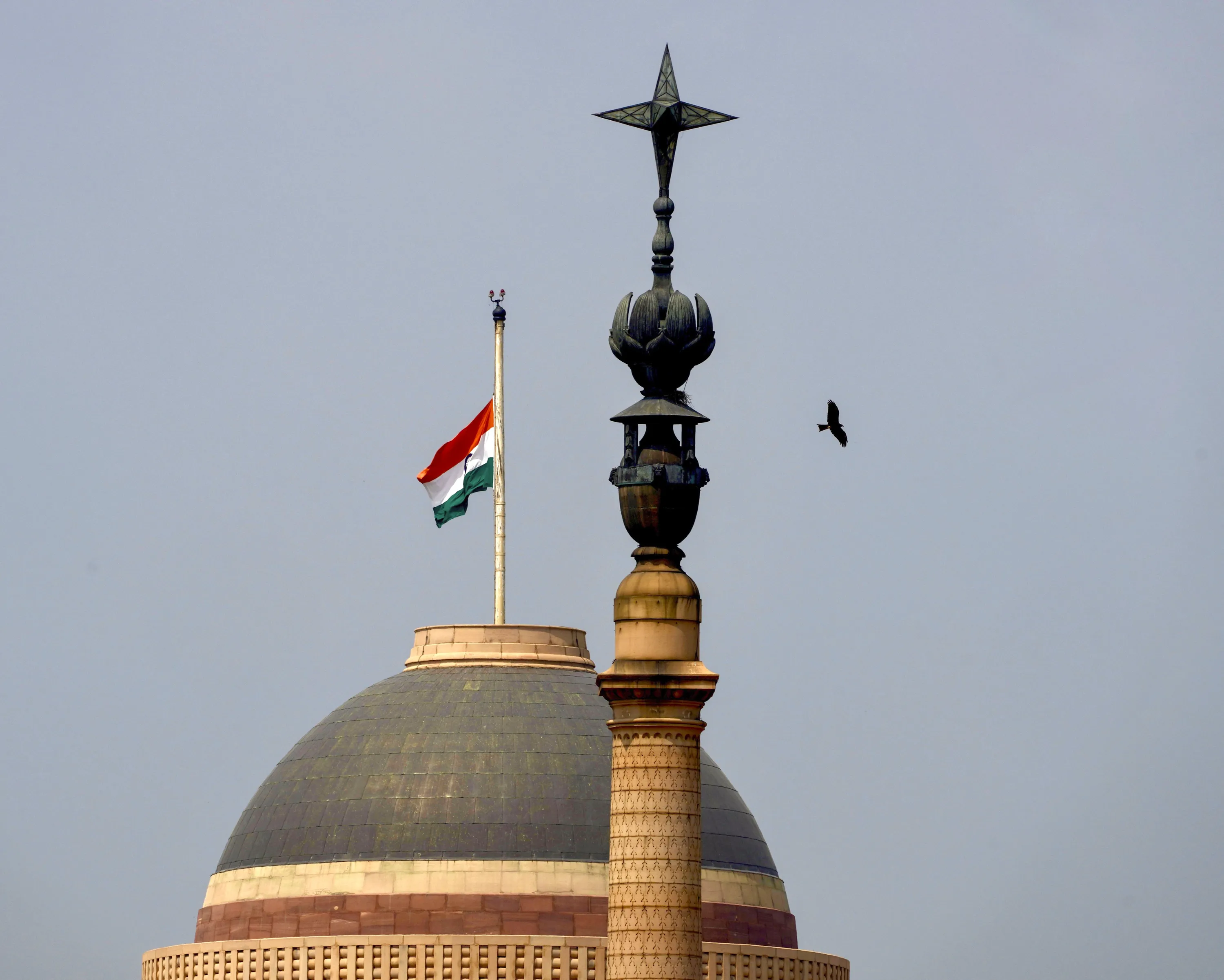 The Indian flag flies at half-mast at the Indian Presidential Palace following Thursday’s death of Britain's Queen Elizabeth II in New Delhi, India, Sunday, September 11, 2022. (Photo by Manish Swarup/AP Photo)