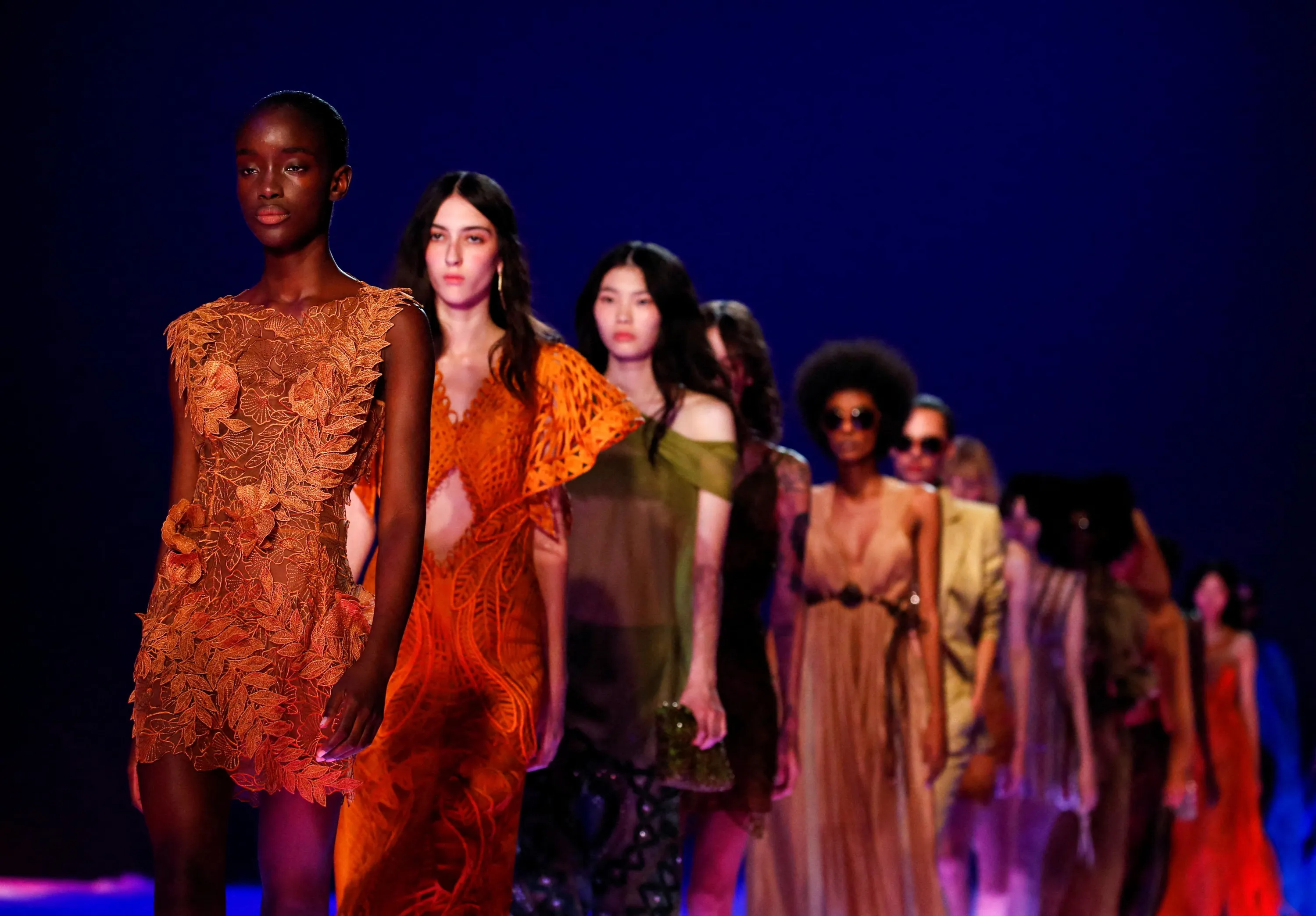 Models display outfits by Alberta Ferretti from her Spring/Summer 2023 collection during the Milan Fashion Week in Milan, Italy on September 21, 2022. (Photo by Alessandro Garofalo/Reuters)