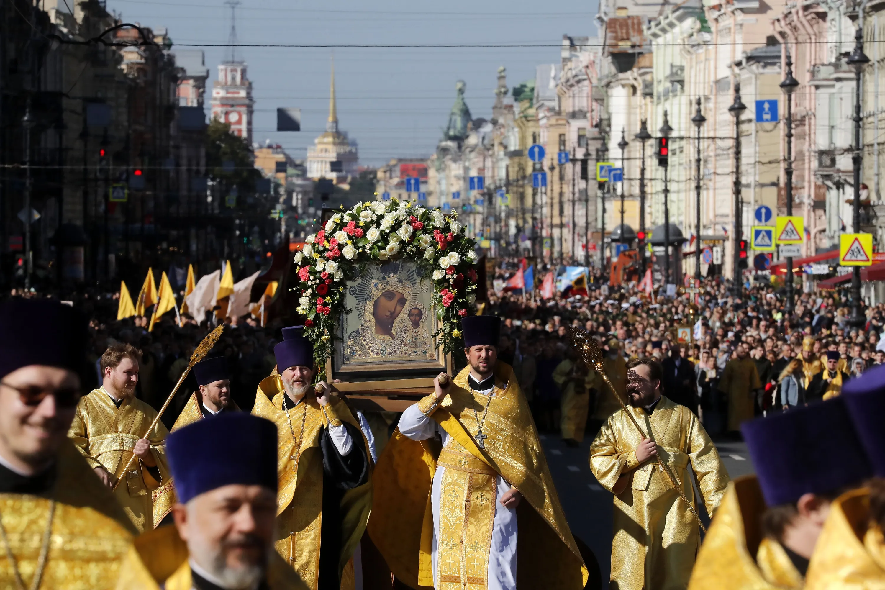 Orthodox believers participate in a procession in St. Petersburg, Russia, 12 September 2022. The procession marks the 298th anniversary of the transfer of the relics of St. Alexander Nevsky, who is considered to be a heavenly protector of St. Petersburg. (Photo by Anatoly Maltsev/EPA/EFE/Rex Features/Shutterstock)