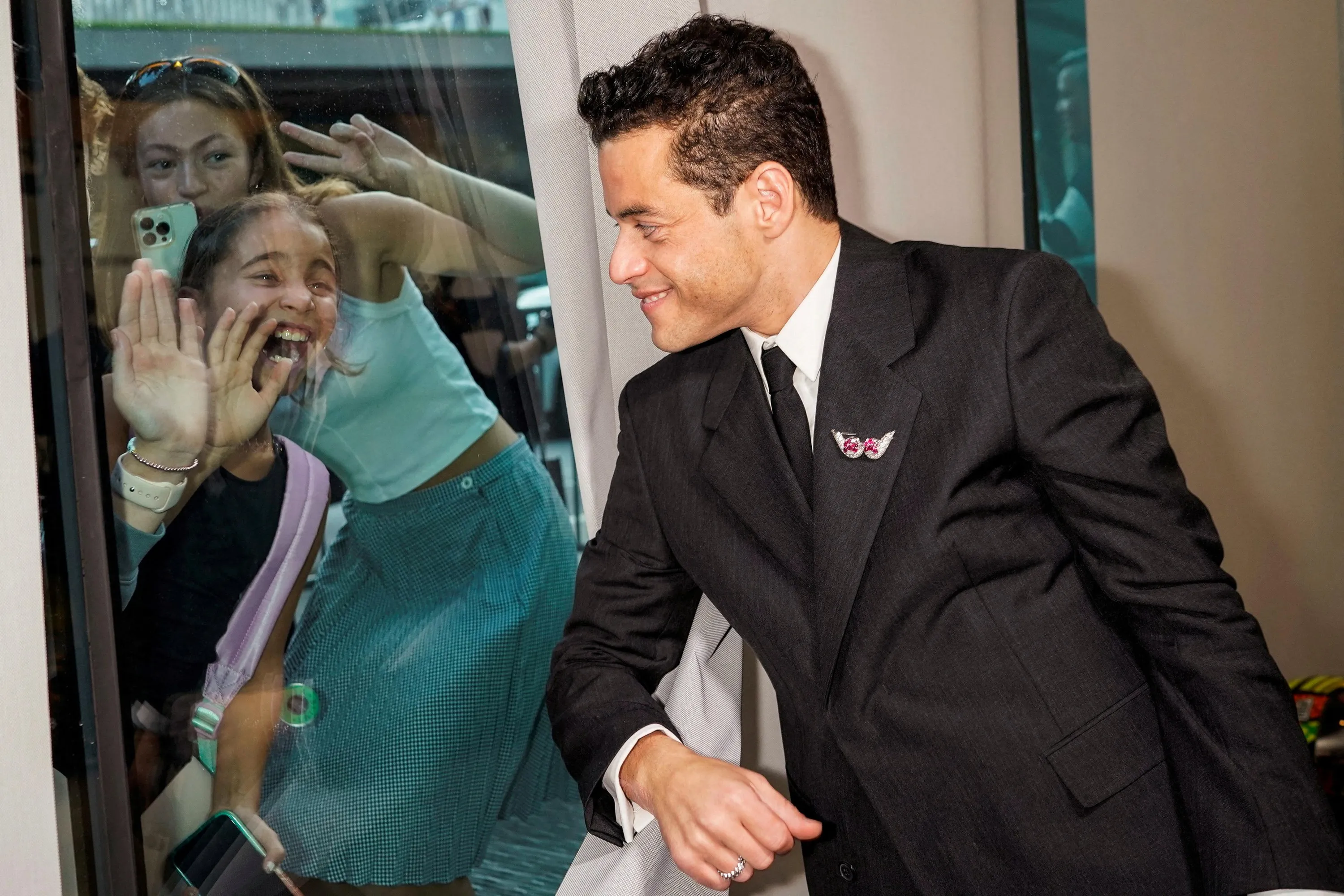 Aactor Rami Malek greets fans as they take a look from the window during the Amsterdam world premiere at Alice Tully Hall in New York, U.S., September 18, 2022. (Photo by Eduardo Munoz/Reuters)