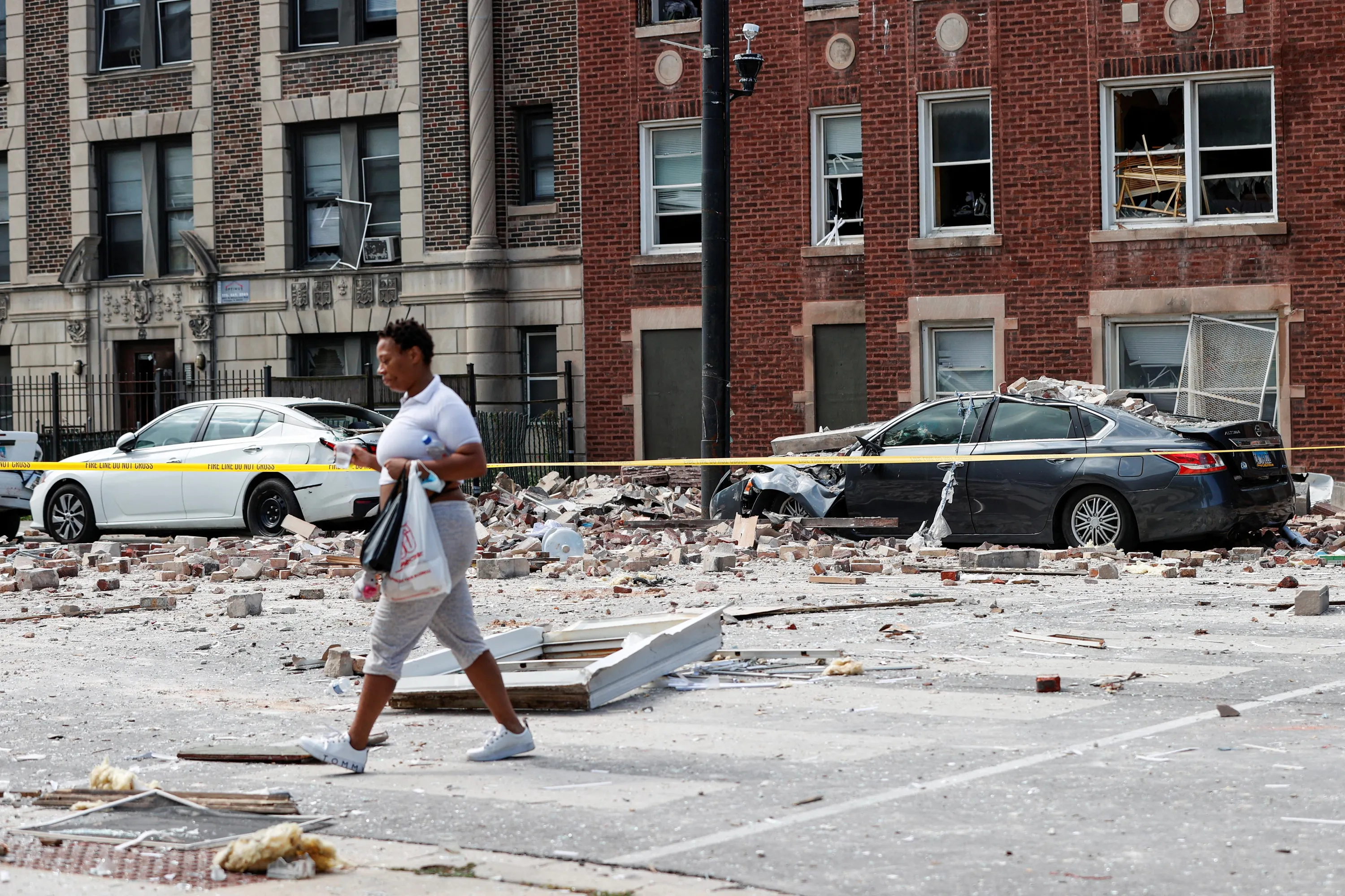 Bricks and debris are scattered on the street after a building explosion caused injuries in Chicago, Illinois, U.S. September 20, 2022. (Photo by Kamil Krzaczynski/Reuters)