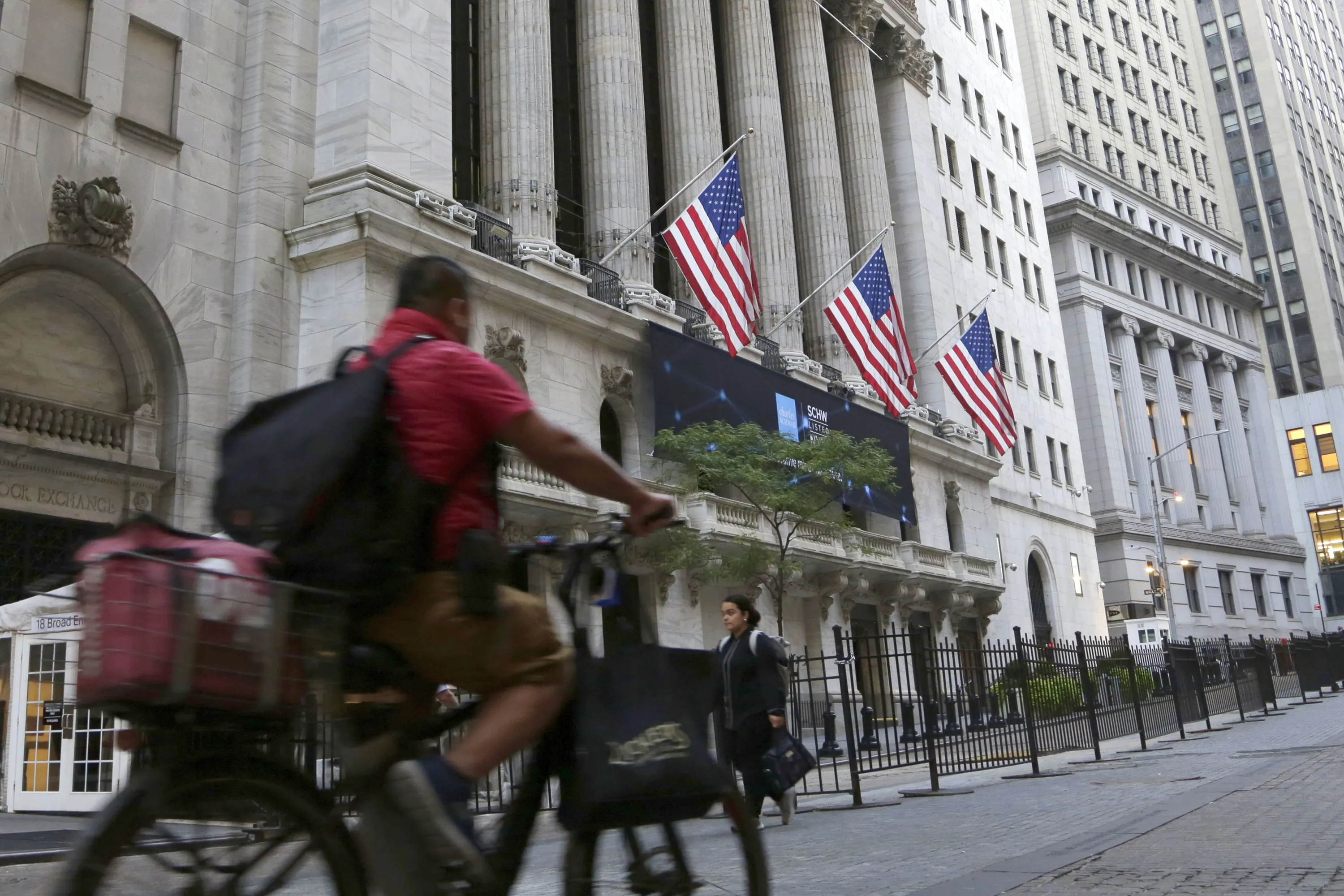A man bikes past the New York Stock Exchange, Wednesday, September 21, 2022, in New York. Stocks are off to a modestly higher start on Wall Street ahead of a widely expected interest rate increase by the Federal Reserve. The S&P 500 was up half a percent in the early going Wednesday, as was the Dow Jones Industrial Average. (Photo by Peter Morgan/AP Photo)