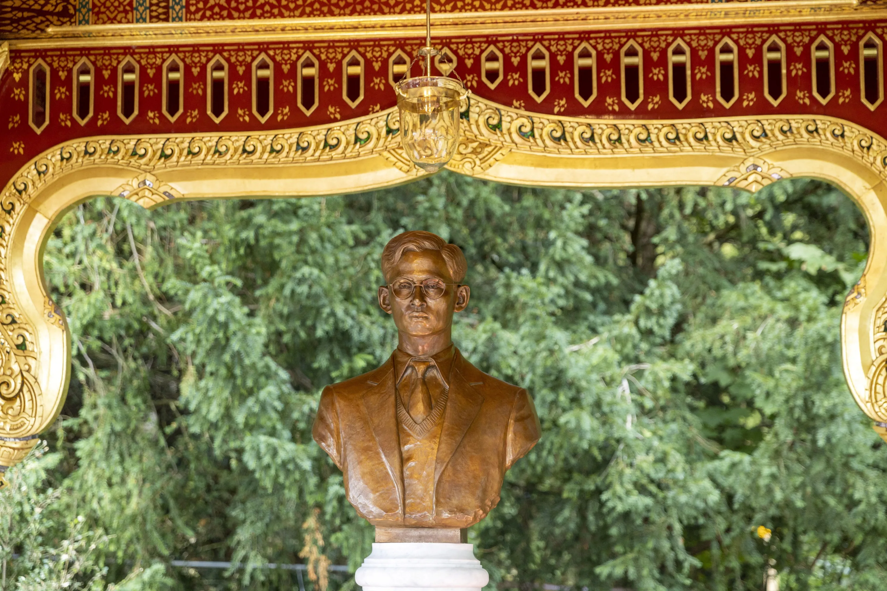 A view of the bust of Thailand's late King Bhumibol Adulyadej, offered to the city of Lausanne, where he spent many years studying, by the alumni association of Thai students in Switzerland, at the Thai Pavillon in the Denantou park in Lausanne, Switzerland, September 14, 2022. (Photo by Denis Balibouse/Reuters)