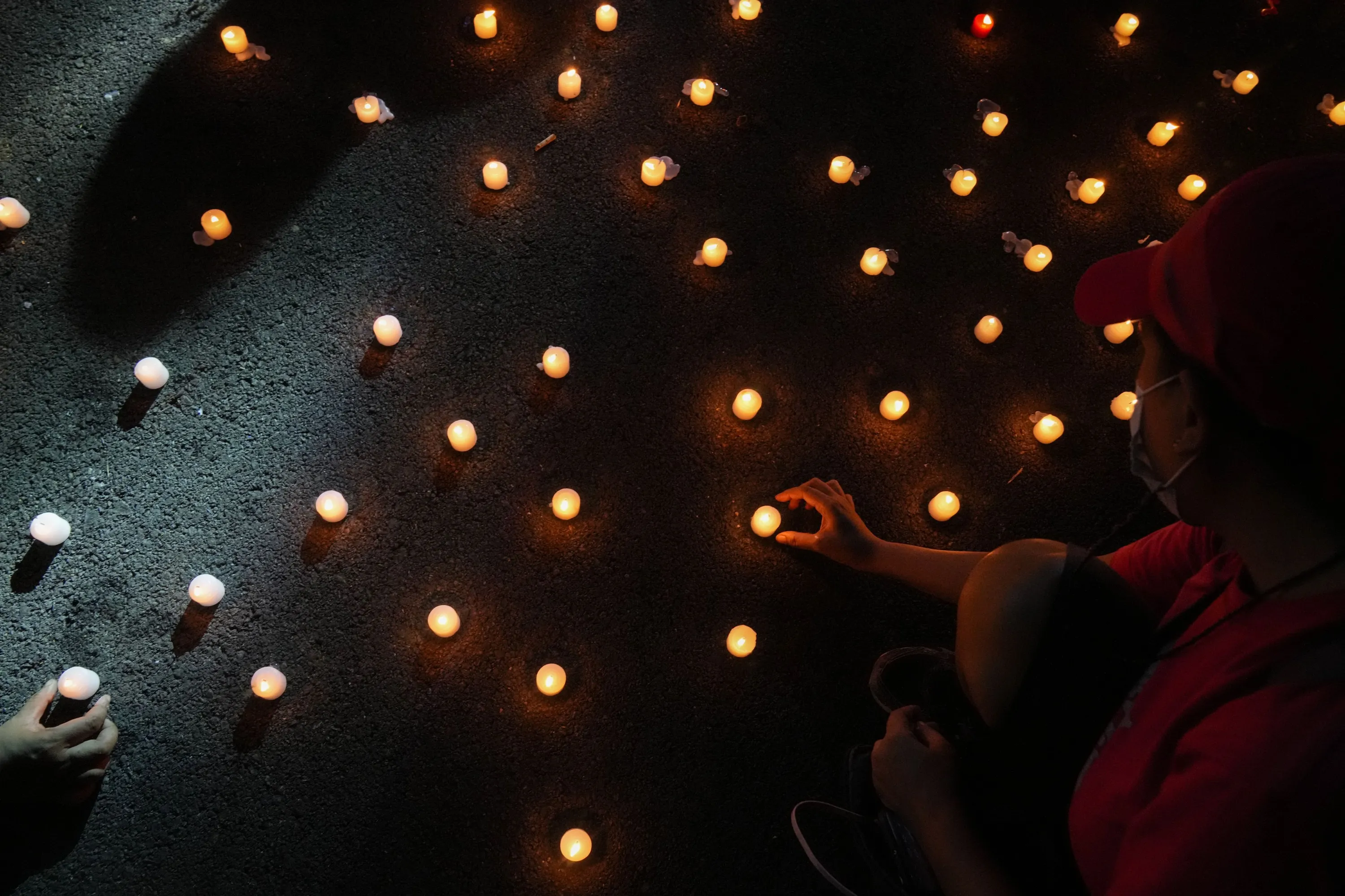 Human rights groups lights candles as they mark the 50th anniversary of martial law at the University of the Philippines in Metro Manila, Philippines, Wednesday, September 21, 2022. Survivors of torture and other atrocities under Philippine dictator Ferdinand Marcos on Wednesday marked his martial law declaration 50 years ago by pressing their demand for justice and apology from his son, now the country's president in a stunning reversal of fortunes for the once reviled family. (Photo by Aaron Favila/AP Photo)