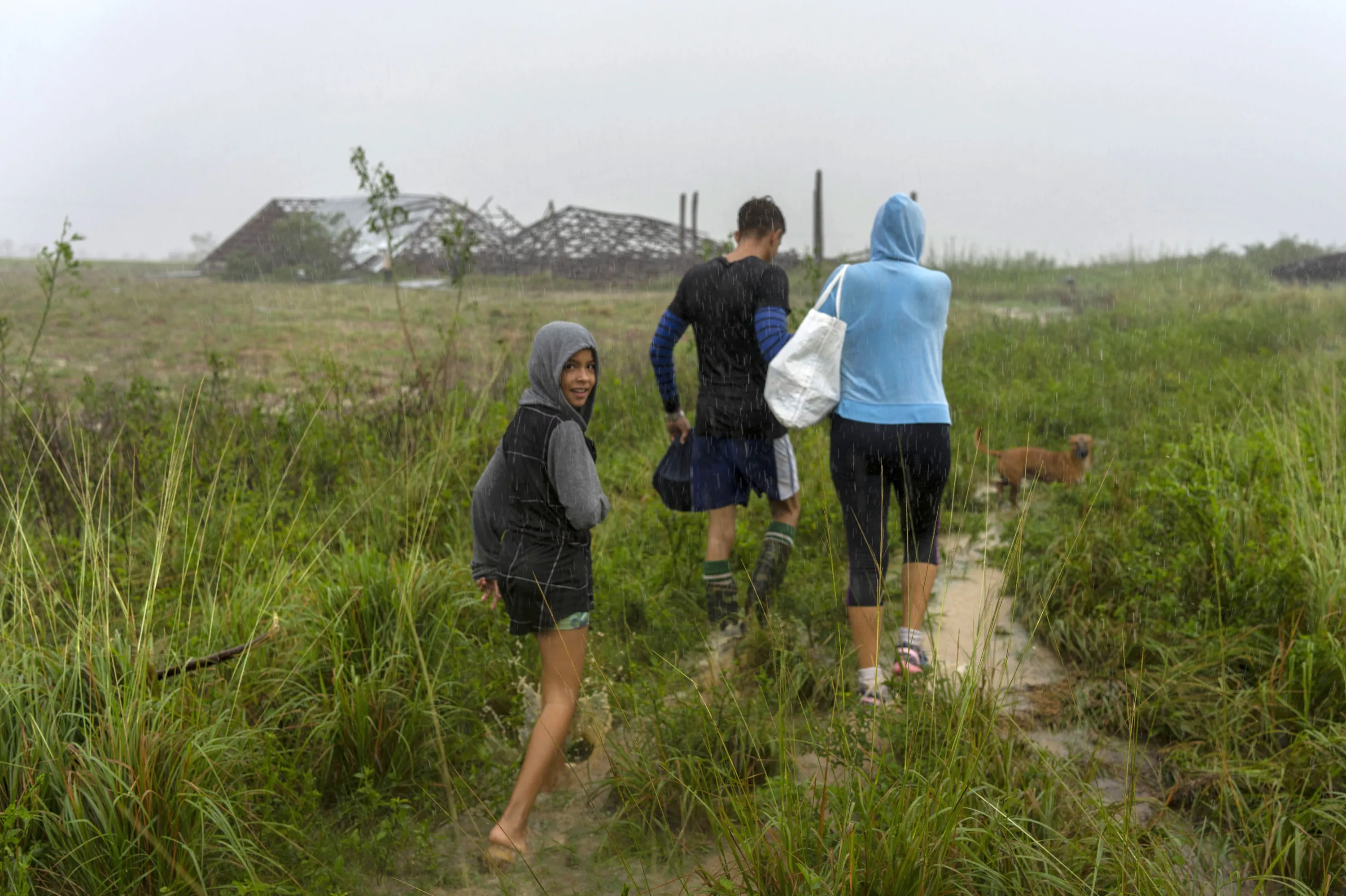 A family walks through the rain in search of shelter after their home flooded when Hurricane Ian hit in Pinar del Rio, Cuba, Tuesday, September 27, 2022. (Photo by Ramon Espinosa/AP Photo)