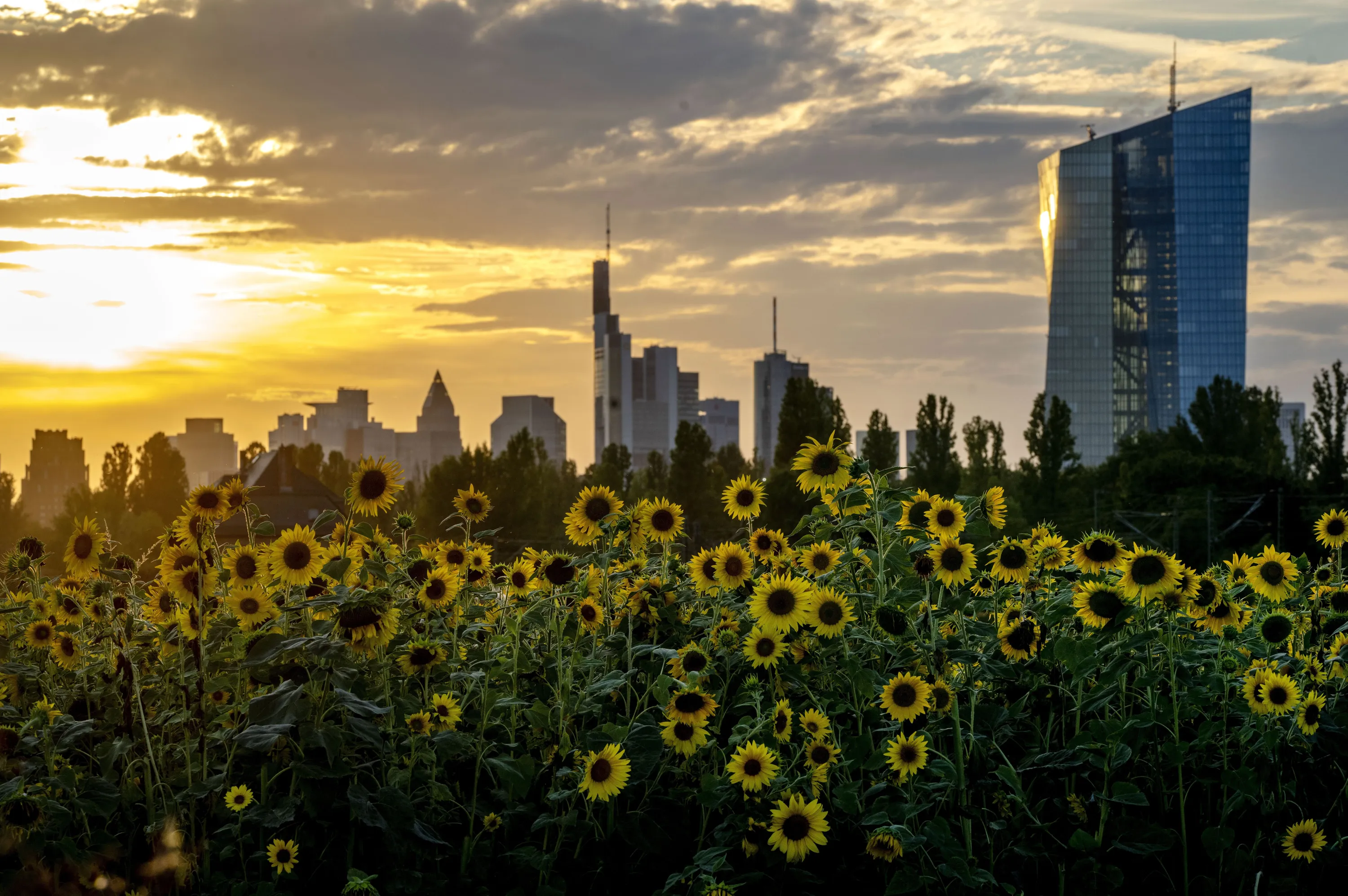 Sunflowers blossom in front of the European Central Bank, right, in Frankfurt, Germany, Monday, September 5, 2022. The ECB governing council will meet on Thursday. (Photo by Michael Sohn/AP Photo)