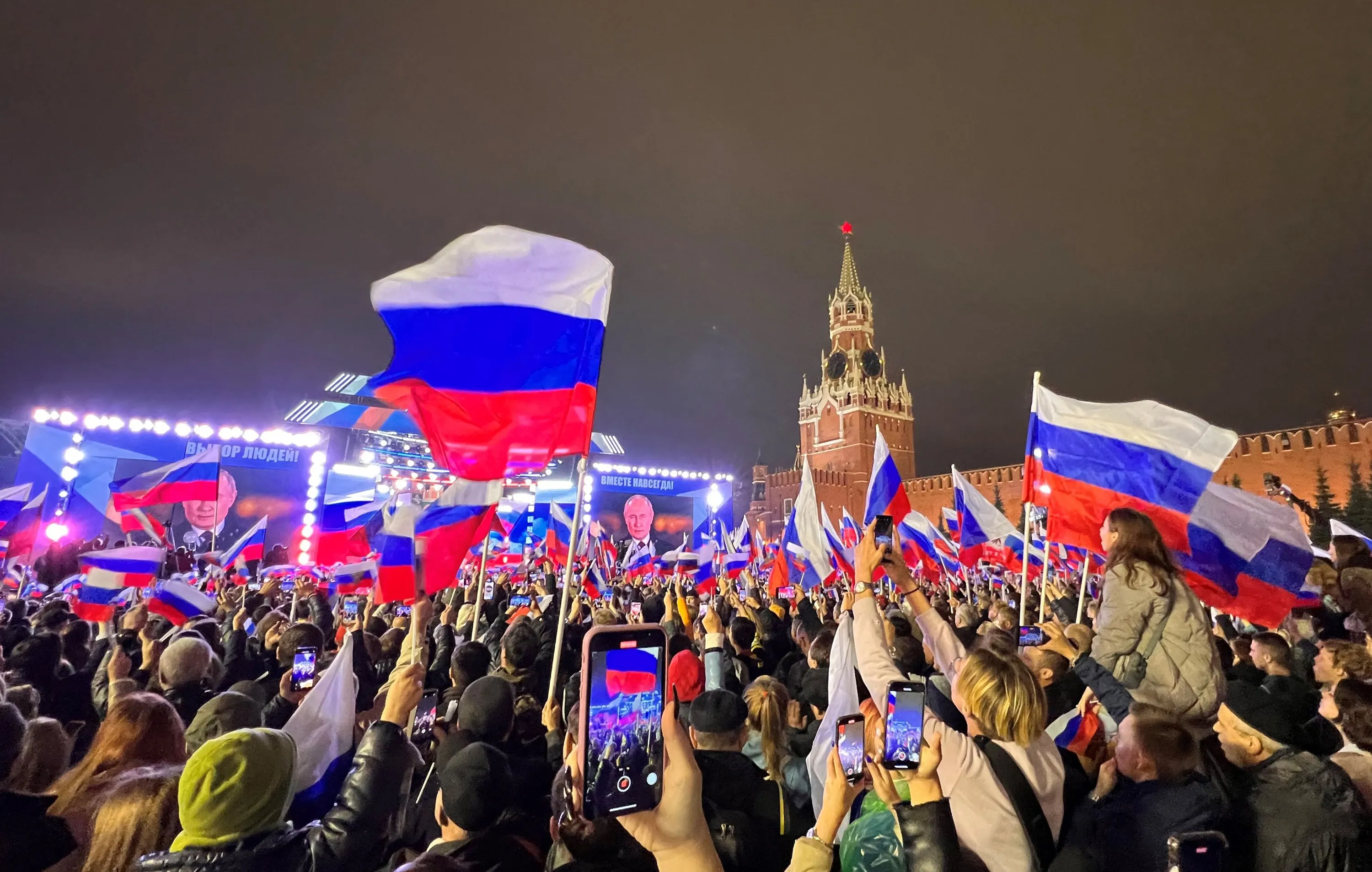People attend a rally and a concert marking the annexation of four regions of Ukraine Russian troops occupy – Lugansk, Donetsk, Kherson and Zaporizhzhia, at Red Square in central Moscow on September 30, 2022. (Photo by AFP Photo/Stringer)