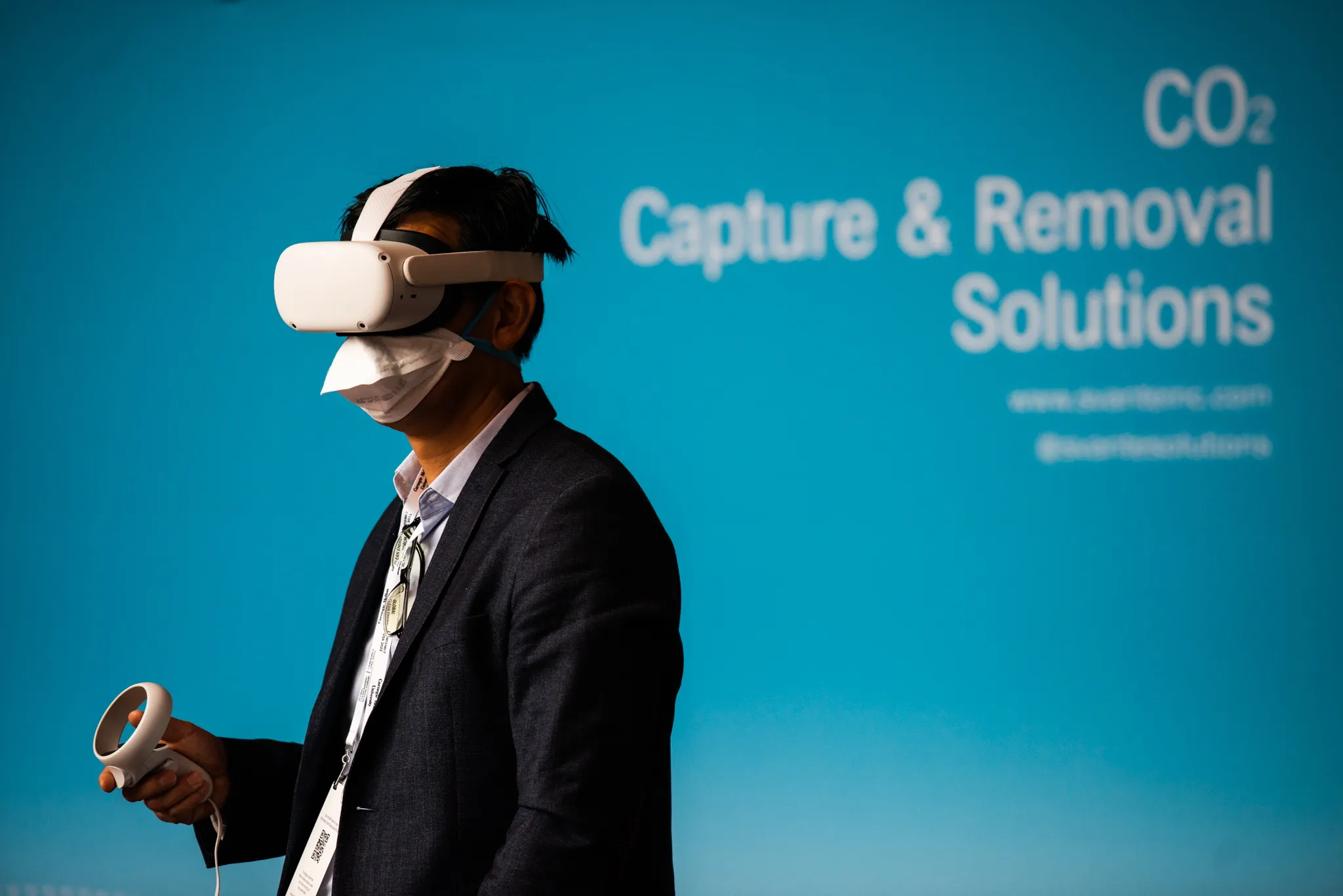 An attendee explores a carbon capture facility in virtual reality during the Global Clean Energy Action Forum held at the David L Lawrence Convention Center in Pittsburgh, Pennsylvania, USA, 23 September 2022. The Forum, hosted by the US Department of Energy, brings together thousands of attendees, government representatives and more than 300 CEOs to “advance the implementation of clean energy deployment and innovation”. (Photo by Shane Dunlap/EPA/EFE)