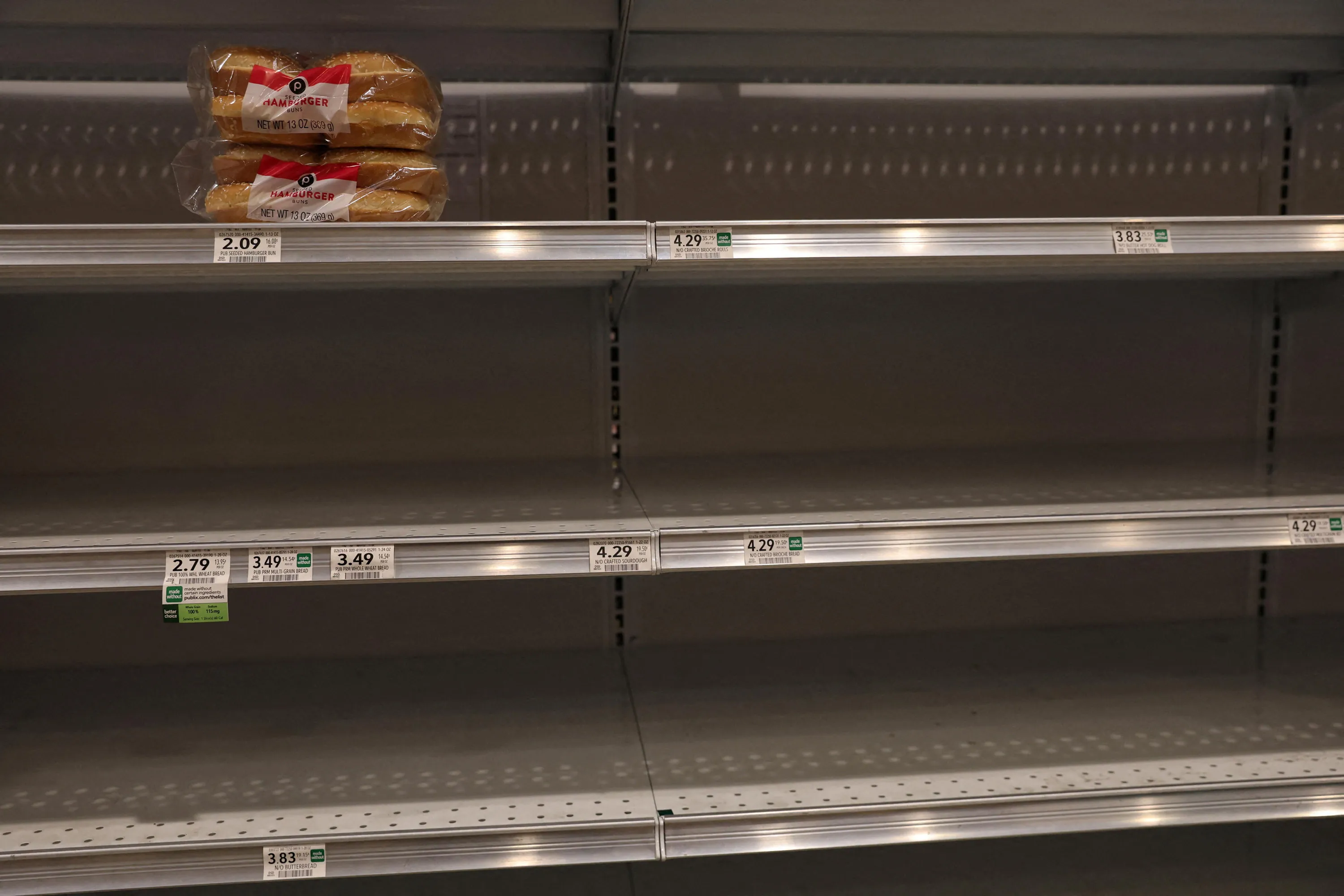 A package of sandwich buns sits on empty shelves, as Hurricane Ian spins toward the state carrying high winds, torrential rains and a powerful storm surge, at a grocery store in Tampa, Florida, U.S., September 27, 2022. (Photo by Shannon Stapleton/Reuters)