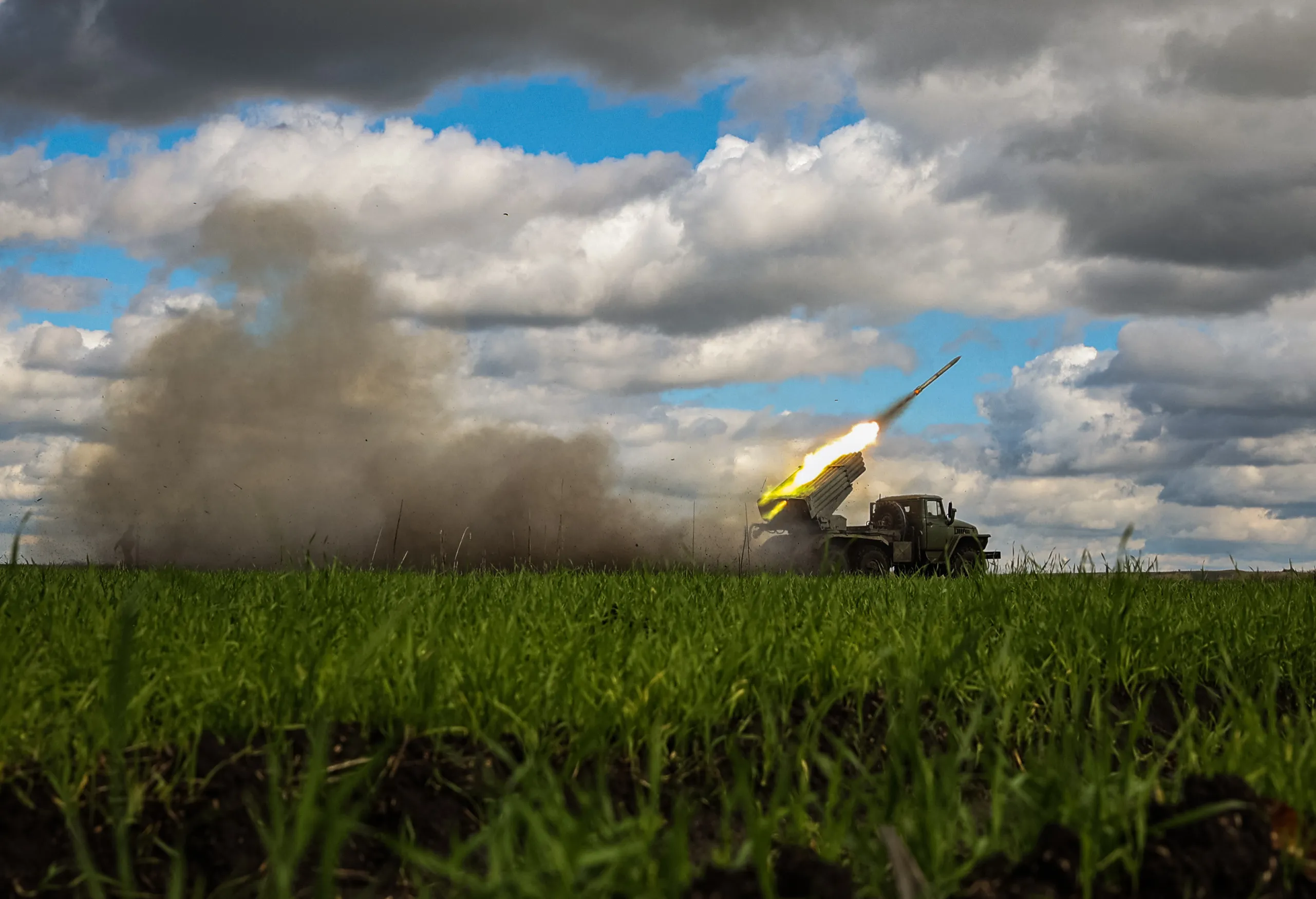 A BM-21 “Grad” multiple rocket launcher fires towards Russian positions in Donetsk region on October 3, 2022, amid the Russian invasion of Ukraine. (Photo by Anatolii Stepanov/AFP Photo)