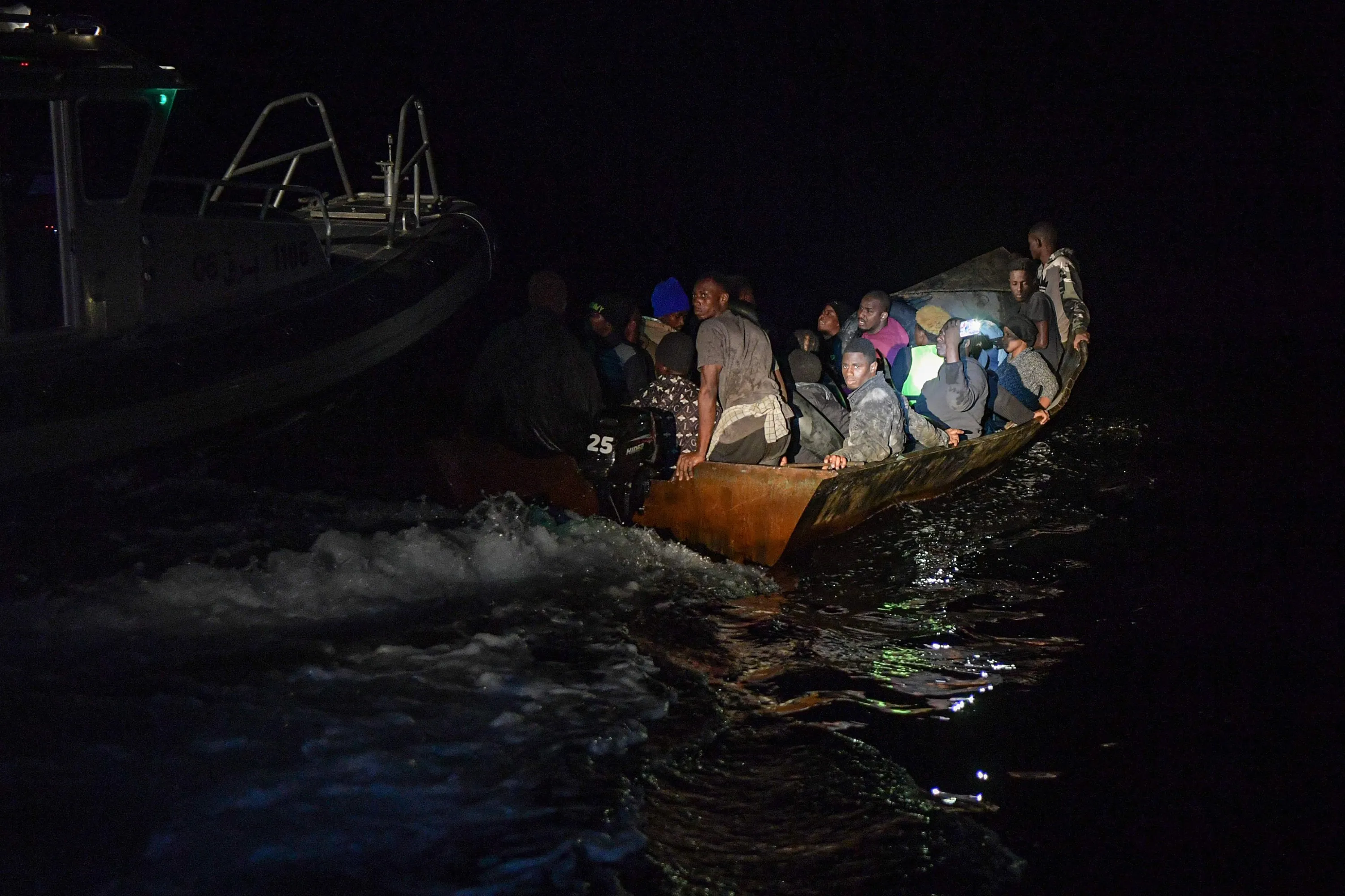 Migrants from sub-Saharan Africa are found late at night by the Tunisian National Guard at sea about 50 nautical miles in the Mediterranean sea off the coast of Tunisia's central city of Sfax on October 4, 2022. (Photo by Fethi Belaid/AFP Photo)