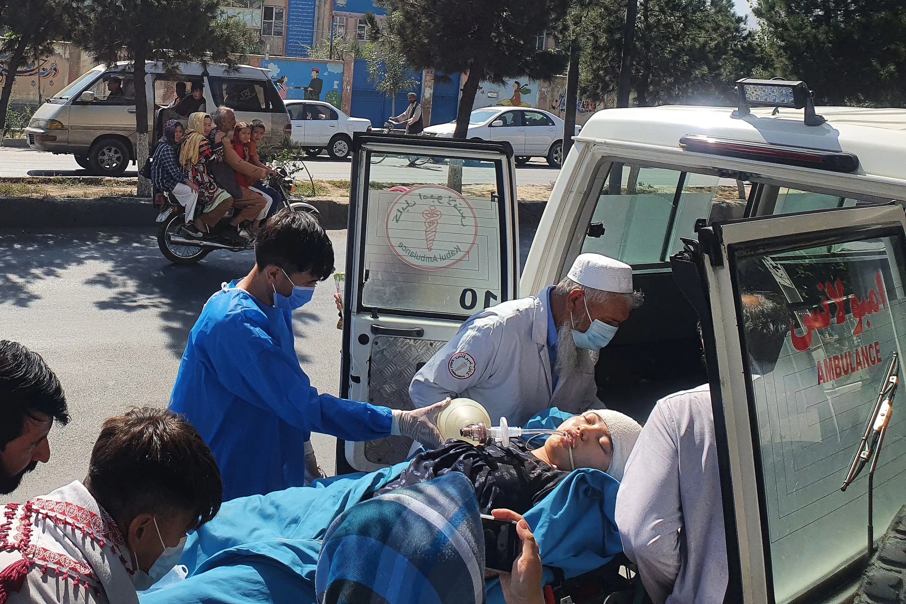 Relatives and medical staff shift a wounded girl from an ambulance outside a hospital in Kabul on September 30, 2022, following a blast at a learning centre in the Dasht-e-Barchi area of Afghanistan's capital. A suicide bomb attack at a learning centre in the Afghan capital on September 30 killed 19 people as students prepared for university entrance exams, police said. (Photo by AFP Photo/Stringer)