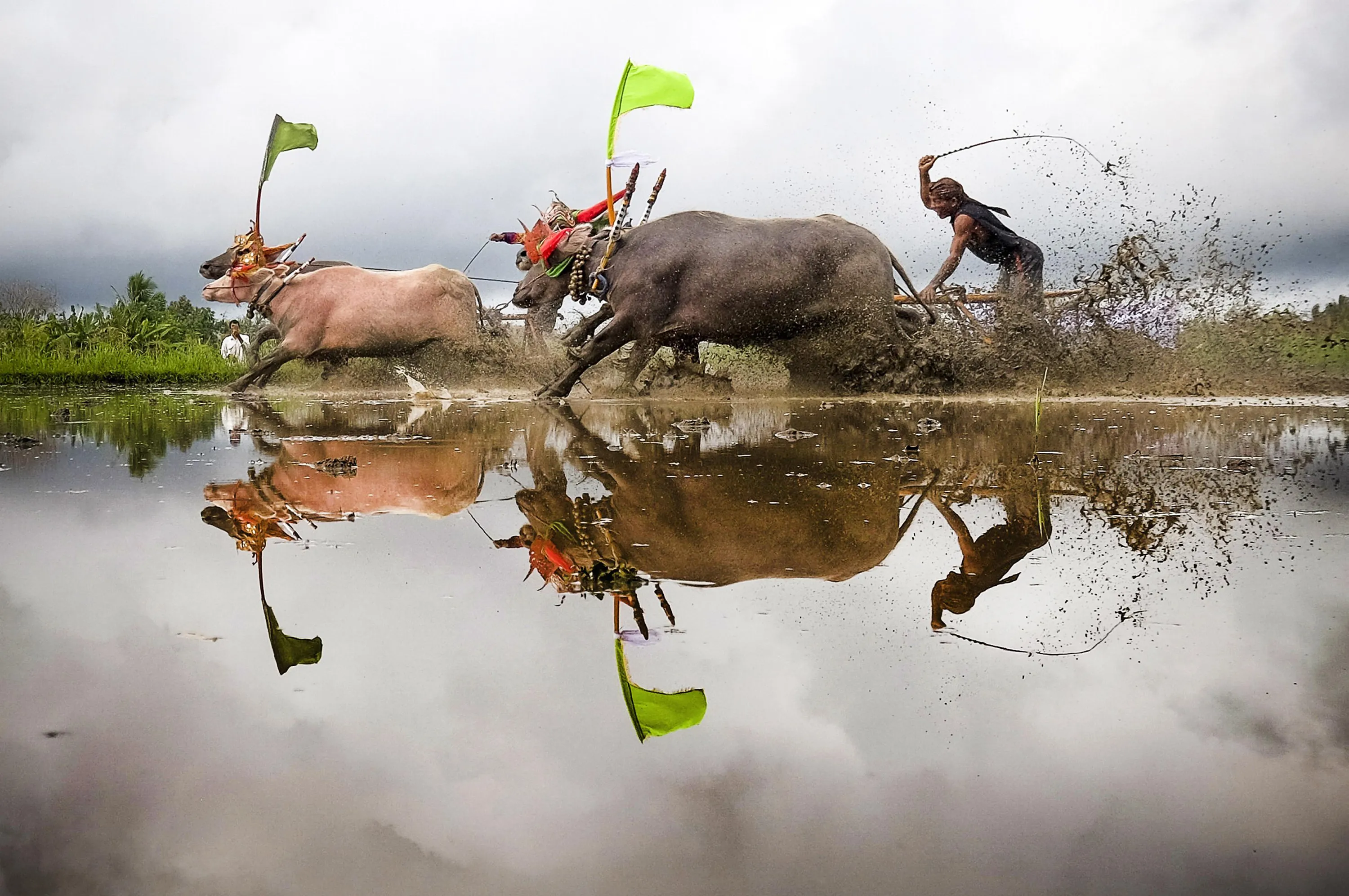Makepung Lampit, a traditional buffalo race in muddy rice fields, gets Bali’s growing season off to a lively start early October 2022. (Photo by Gede Sudika/Solent News)