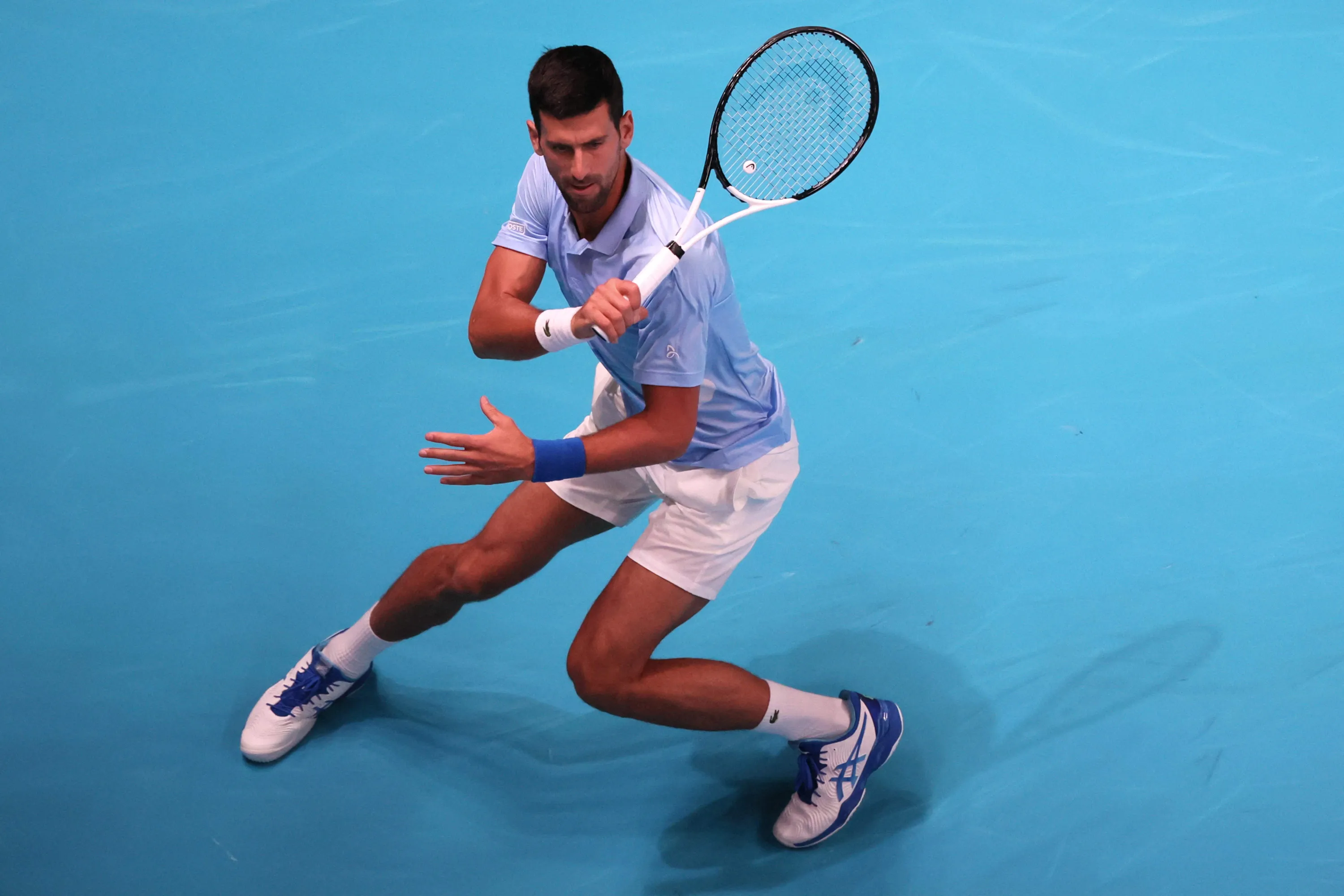 Serbia's Novak Djokovic returns the ball to Spain's Pablo Andujar during their men's singles tennis match at the Tel Aviv Watergen Open 2022 in Israel's Mediterranean coastal city of Tel Aviv on September 29, 2022. (Photo by Jack Guez/AFP Photo)